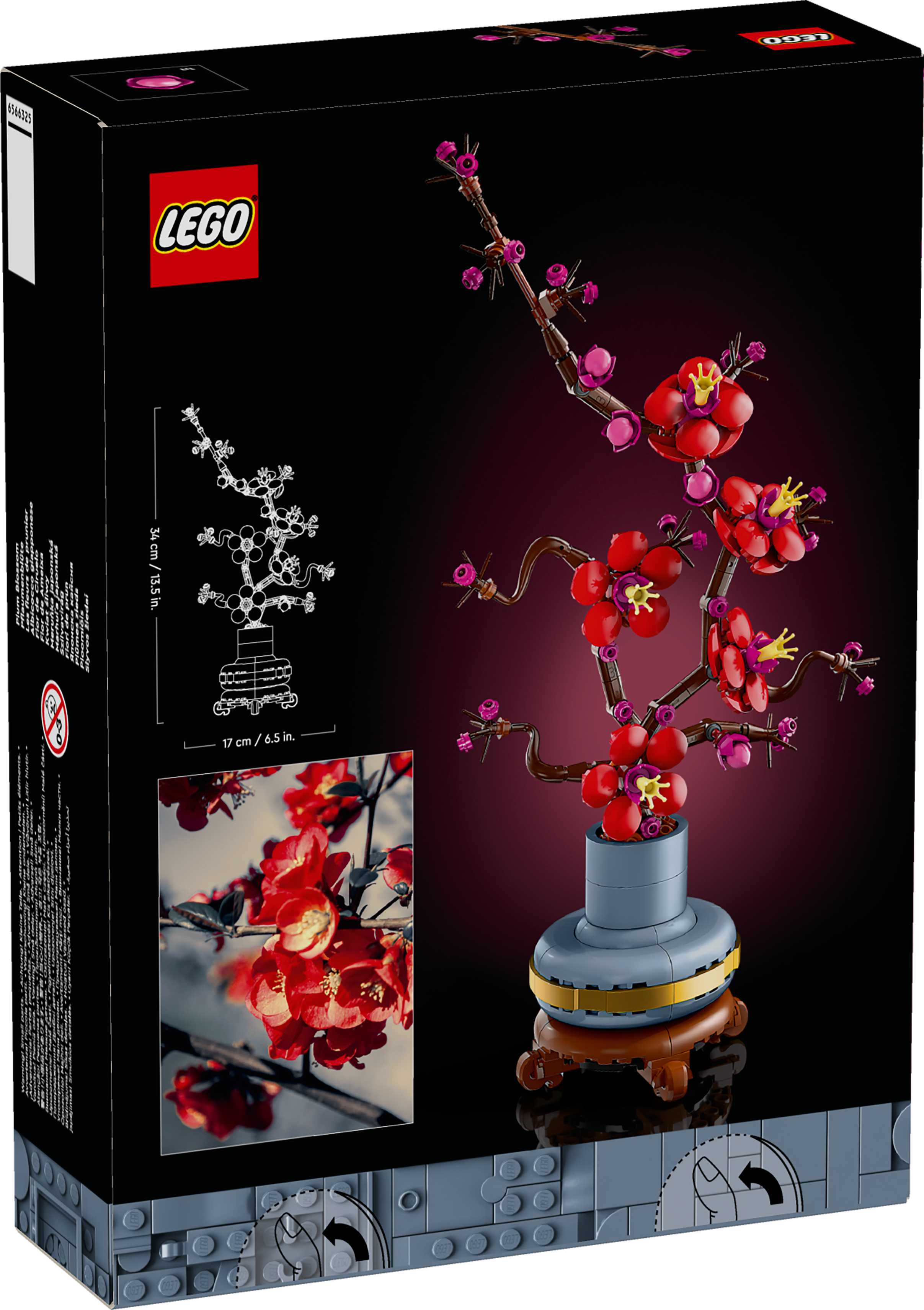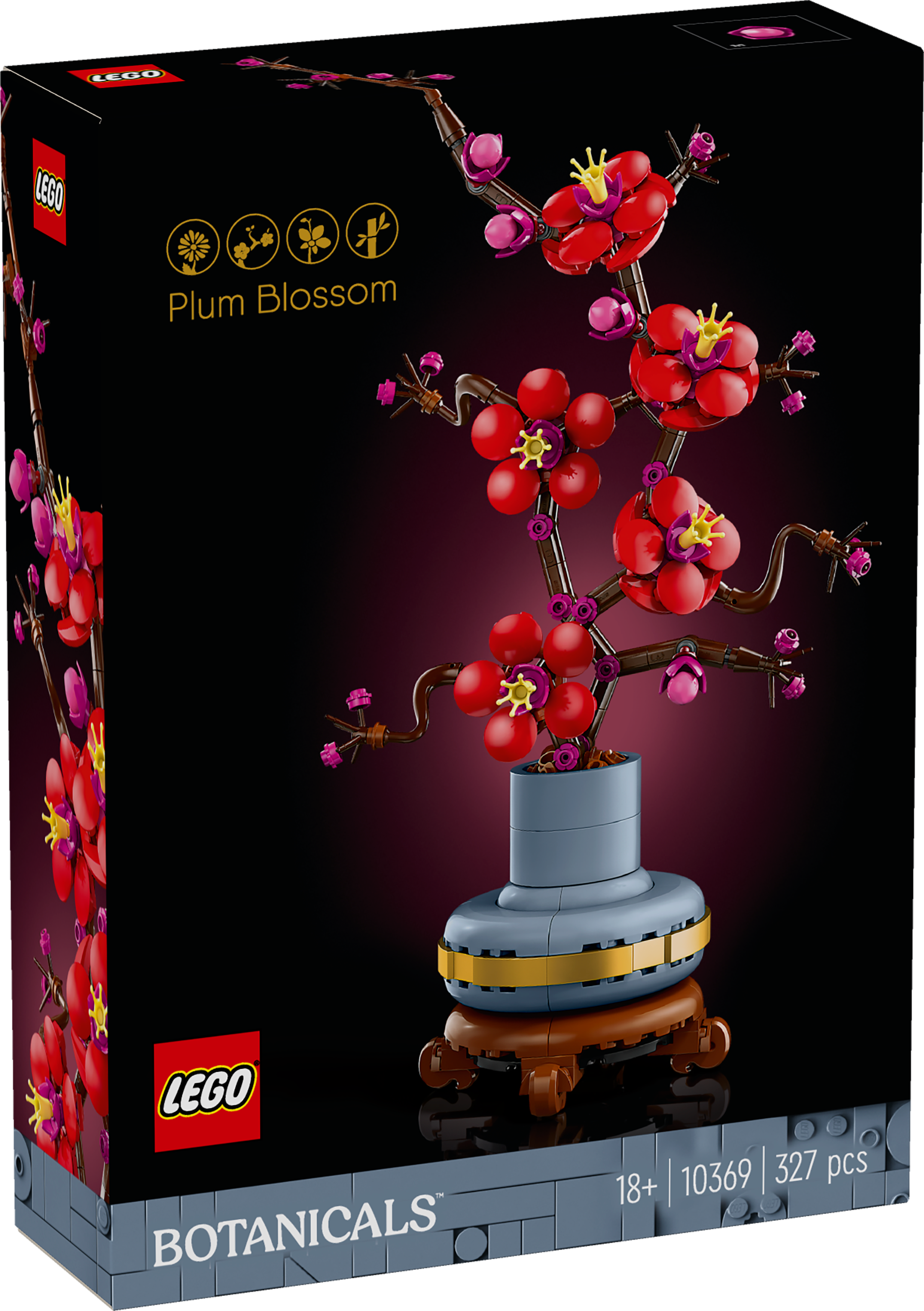 Die LEGO® Botanicals Pflaumenblüte (10369) aus diesem Bauset für Erwachsene lässt dich wunderbar abschalten. Die Pflaumenblüte ist ein beliebtes Motiv in traditionellen chinesischen Tuschegemälden und eine Pflanze aus dem klassischen Quartett der Vier Edlen. Freu dich auf ein achtsames Bauprojekt. Diese zeitlose Blumendeko ist aber auch ein perfektes Geschenk zu jedem Anlass. Diese detailgetreue Nachbildung spiegelt die Eleganz dieser legendären Winterblume mit ihrem holzigen Stängel und den Blüten in lebendigen Rot- und Magentatönen wider. Die Pflanze steht in einem pastellblauen Blumentopf mit goldenem Band auf einem Ständer in Holzoptik. Das Modell lässt sich leicht zusammenstecken und bietet ein lohnendes Bauerlebnis. Eine ebenso schöne wie pflegeleichte Blumendeko fürs Wohnzimmer oder Büro. Die baubaren Modelle aus der LEGO Botanik Kollektion, die zu den inspirierenden Bausets zählen, die speziell auf Erwachsene zugeschnitten sind, bieten dir Raum zum Entspannen. Eine digitale Version der Bauanleitung zu diesem Set ist außerdem in der LEGO Builder App verfügbar.