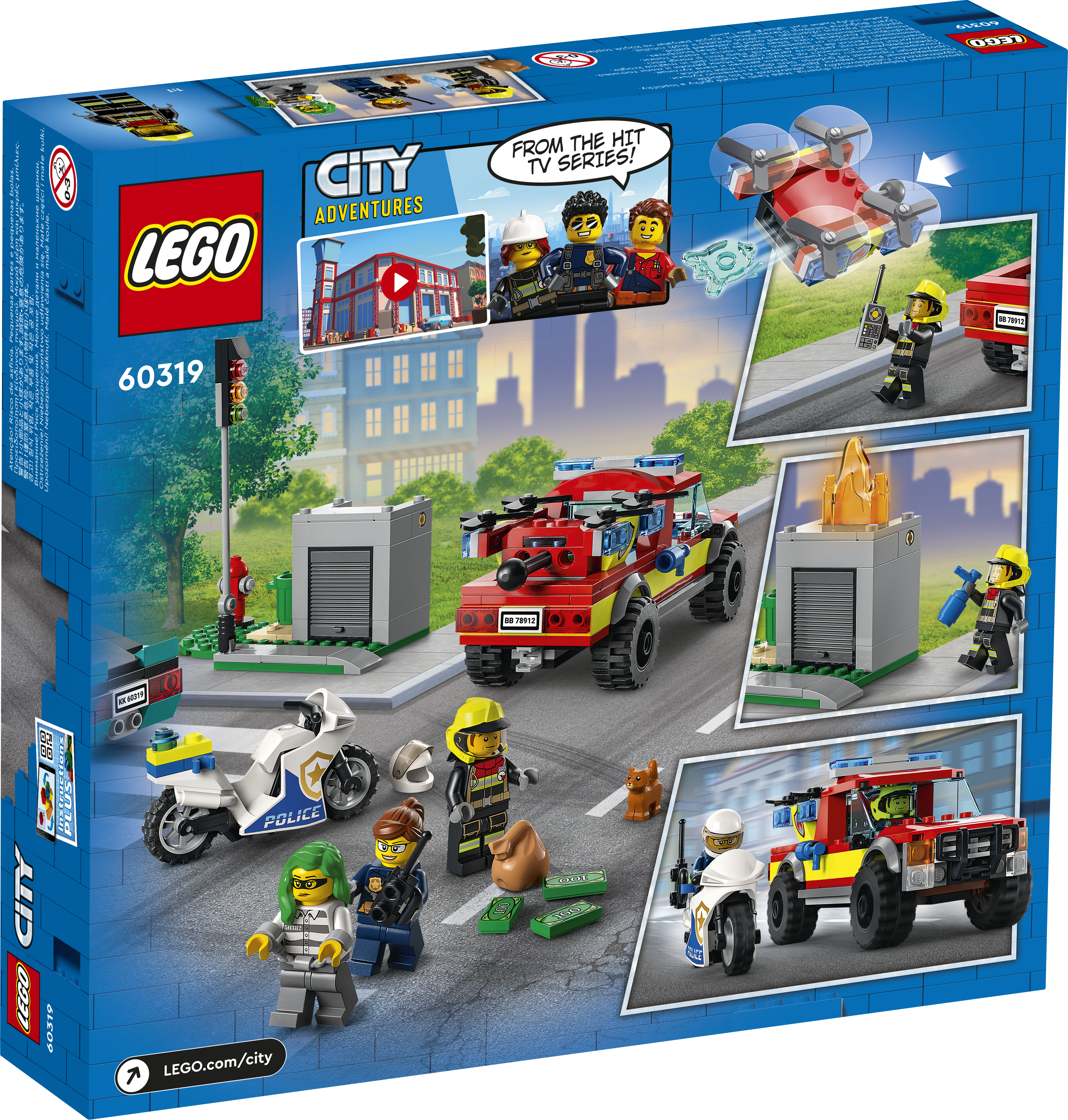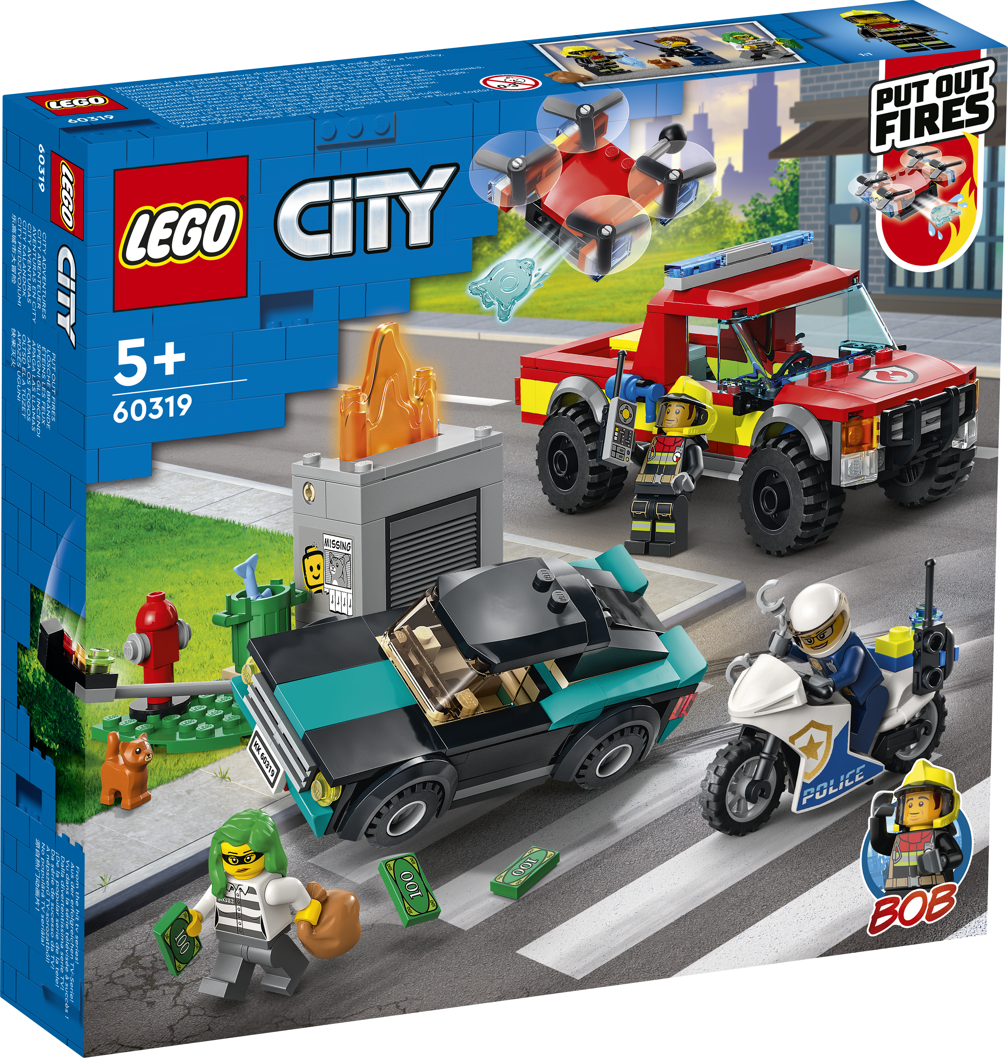 • Inhalt der Sets: Die Box beinhaltet einen Feuerwehr-Pickup mit Drohne, ein Polizeimotorrad, das Auto der Ganovin, eine Katzenfigur und 3 Minifiguren, darunter auch Bob aus der LEGO® City TV-Serie