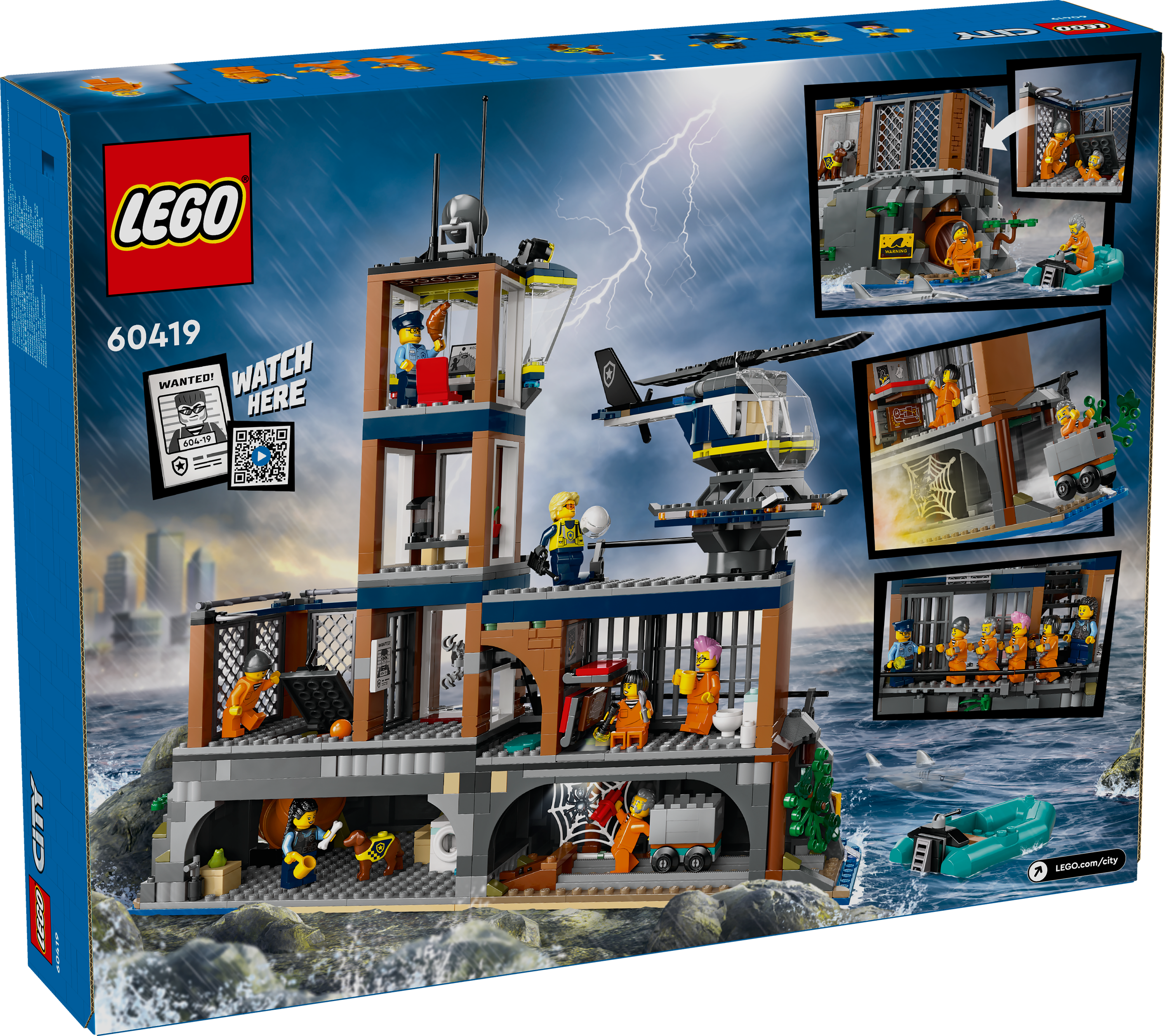 In der LEGO® City Polizeistation auf der Gefängnisinsel (60419) sitzen einige der schlimmsten Ganoven der Stadt in Haft, die allerdings schon andere Pläne schmieden! Mit diesem fantastischen Spielset erwarten dich viele spannende Actionabenteuer. Neben einem Gefängnis in den Klippen mit jeder Menge Details und Funktionen beinhaltet das Set auch einen Hubschrauber, ein Polizeiboot, ein Schlauchboot, 3 Polizisten und 4 Häftlinge sowie einen Polizeihund und einen Hai. Auf der voll eingerichteten Gefängnisinsel gibt es einen Kontrollraum, einen Pausenraum für die Polizisten, eine Eingangshalle, einen Innenhof mit Geheimausgang, einen Hundezwinger und eine Zelle mit Betten und Fluchttunnel, der zu einer verlassenen Mine führt. Und in der Waschküche der Häftlinge befinden sich Ausbruchswerkzeuge. Ein Hubschrauberlandeplatz und eine Felswand mit einem losen Felsbrocken für eine explosive Flucht vervollständigen das Set. Die LEGO® Builder App nimmt dein Kind auf ein faszinierendes Bauabenteuer mit. In der App kann dein Kind beim Bauen den Baufortschritt verfolgen und 3D-Modellansichten vergrößern, drehen und aus jedem Winkel betrachten.