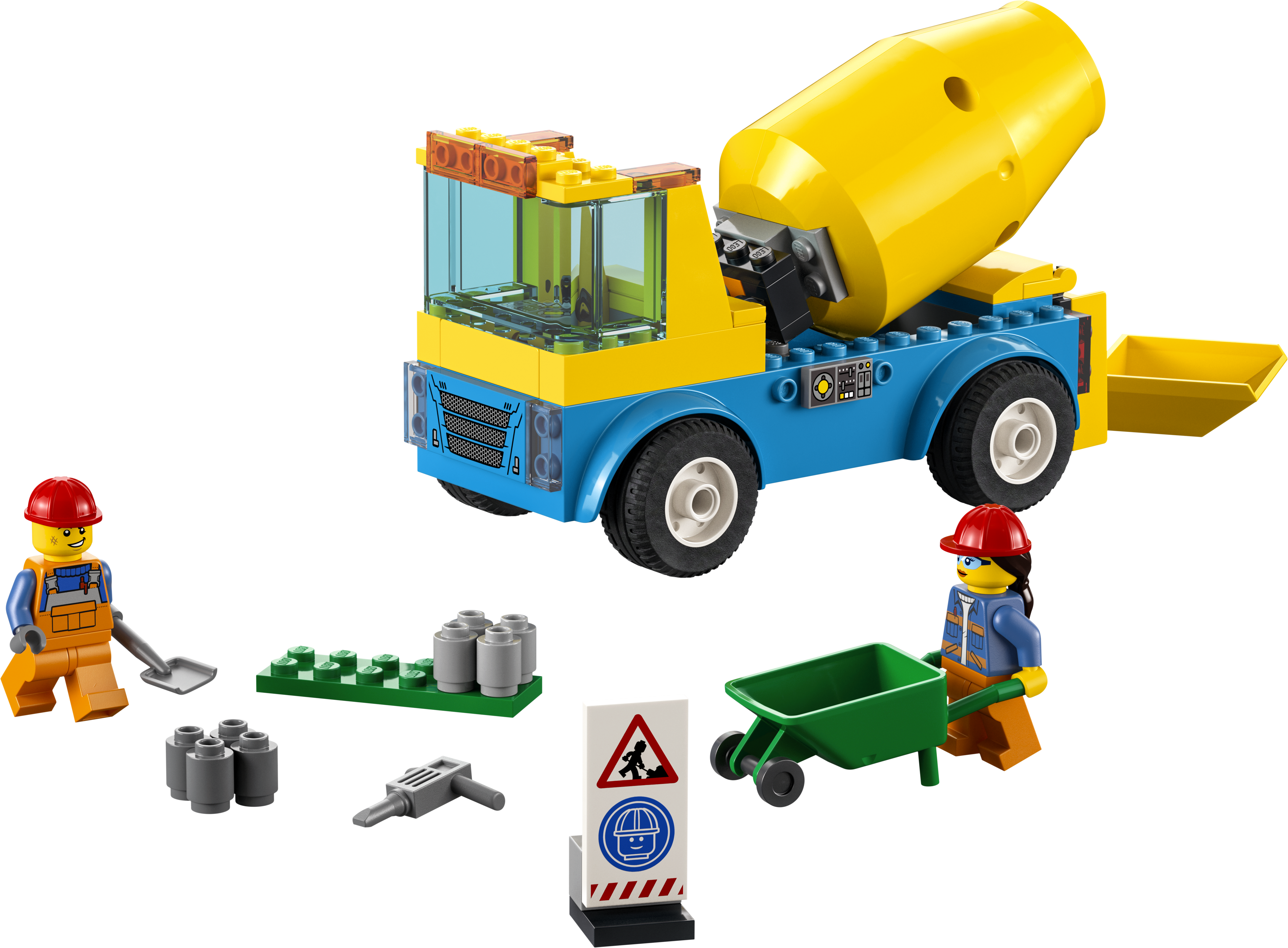• Inhalt des Sets: Alles, was Kinder brauchen, um den LEGO® City Betonmischer zu bauen, sowie eine Schubkarre, ein Presslufthammer, ein Verkehrsschild und 2 Bauarbeiter-Minifiguren