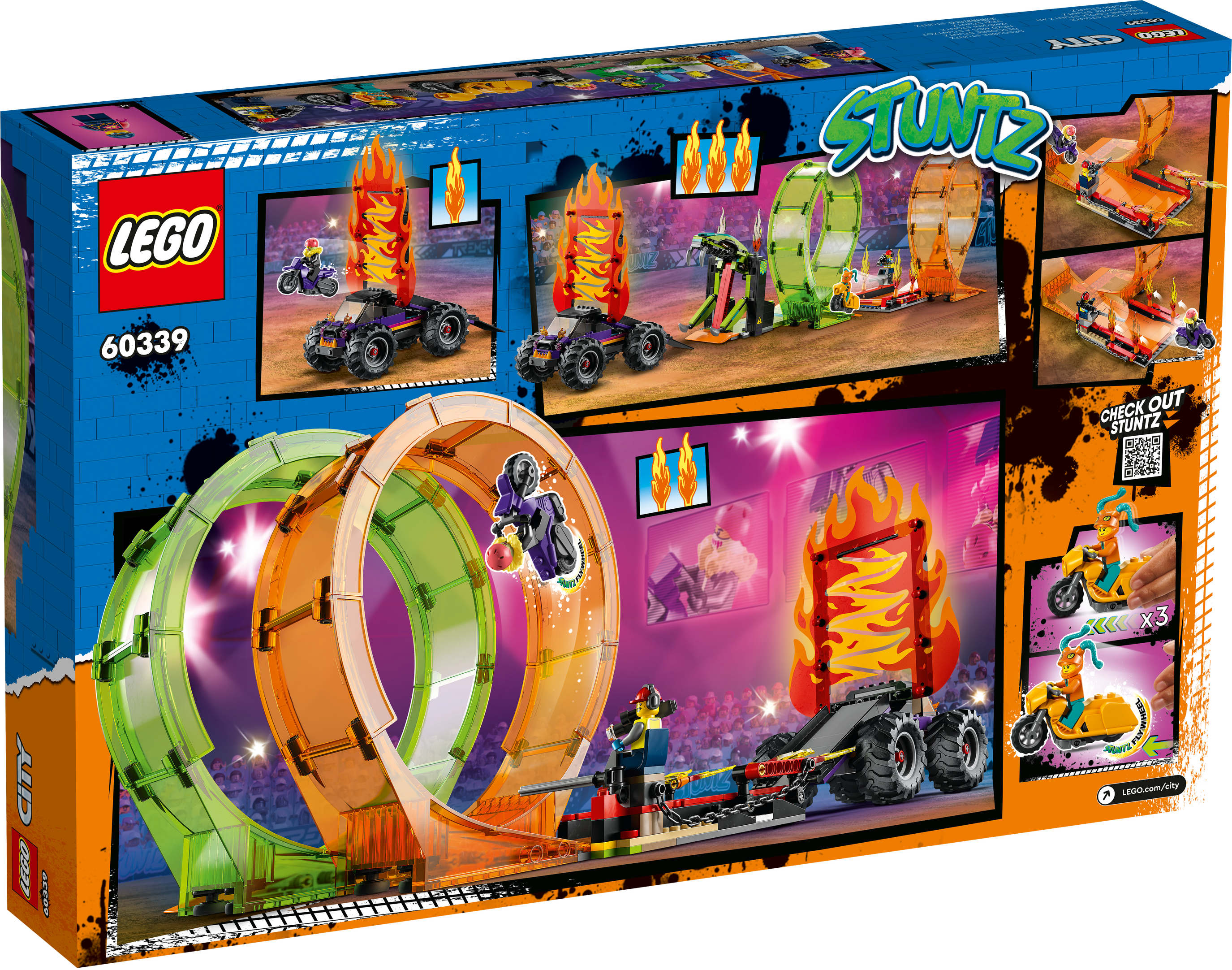 LEGO® City Stuntshow-Doppellooping (60339); Bau- und Spielset für Kinder ab 7 Jahren; mit Feuerlooping, Schlangenlooping, Flammenwand, Monstertruck, 2 Stuntbikes mit Schwungrad und 7 Minifiguren mit Zubehör (598 Teile)