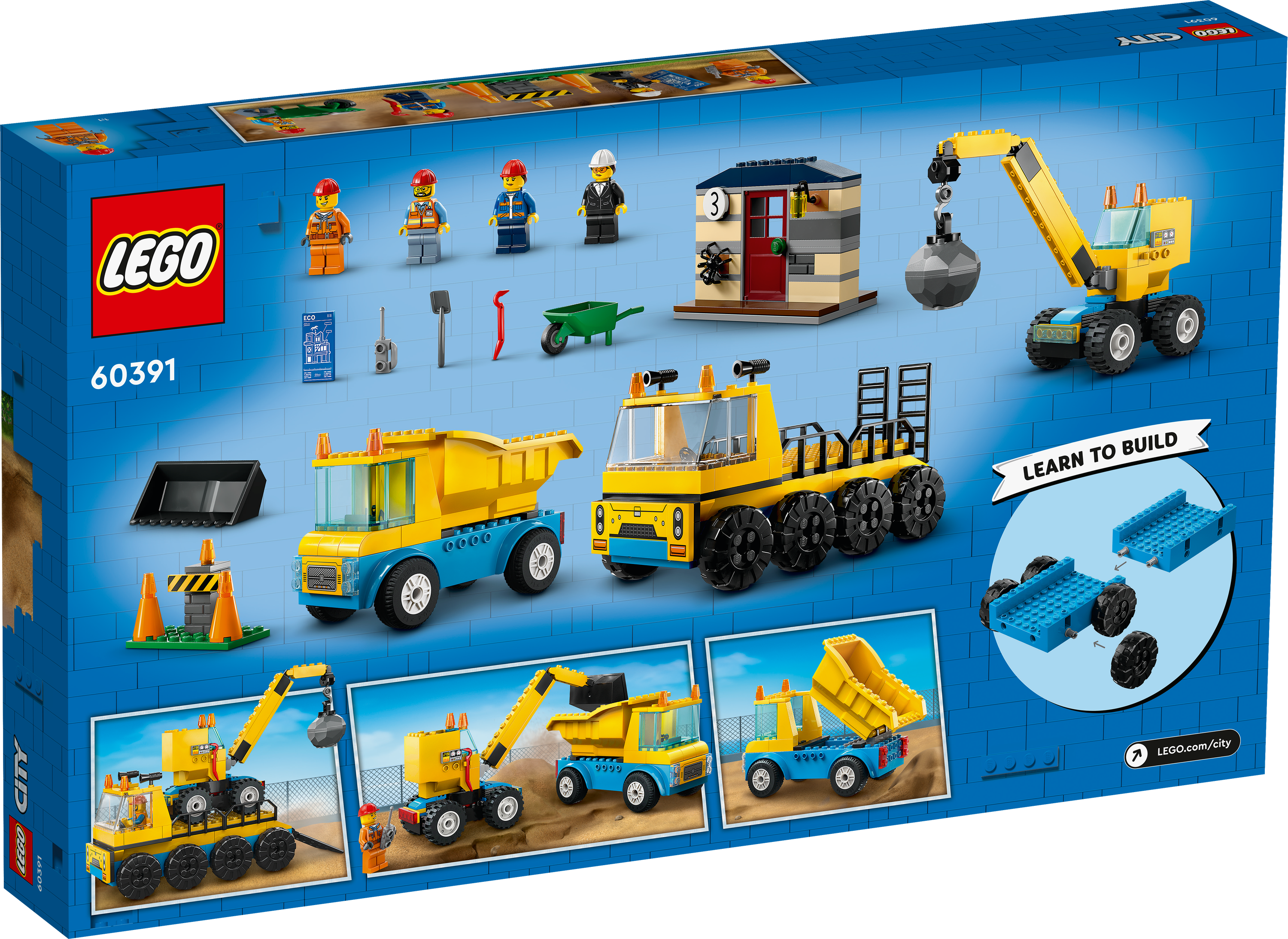 Dein Kind lernt beim Bauen und Spielen mit diesem Set. LEGO® City Baufahrzeuge und Kran mit Abrissbirne (60391) wurde eigens für Kinder ab 4 Jahren entwickelt. Das Bauset beinhaltet 3 Baufahrzeuge, ein baufälliges Haus mit Einsturzfunktion, 3 Bauarbeiter-Minifiguren und cooles Zubehör für ein fantasievolles Spielerlebnis. Für Vorschulkinder Diesem einfach zu bauenden 4+ Spielset liegen ein LEGO Starter-Bauelement und Bildanleitungen bei. Außerdem sind in der LEGO Builder App – unserer digitalen Bauanleitung – intuitiv nutzbare Vergrößerungs- und Drehfunktionen verfügbar, die dein Kind beim Bauen virtuelle Ansichten der Modelle aus jedem Winkel betrachten lassen. LEGO City Starke Fahrzeuge Tolle Fahrzeuge und Maschinen sind für Kinder ein alltäglicher Anblick. Die LEGO City Bausets lassen Kinder realistische Modelle näher betrachten. Außerdem laden faszinierende Figuren zu unzähligen fantasievollen Rollenspielen ohne Limit ein.
