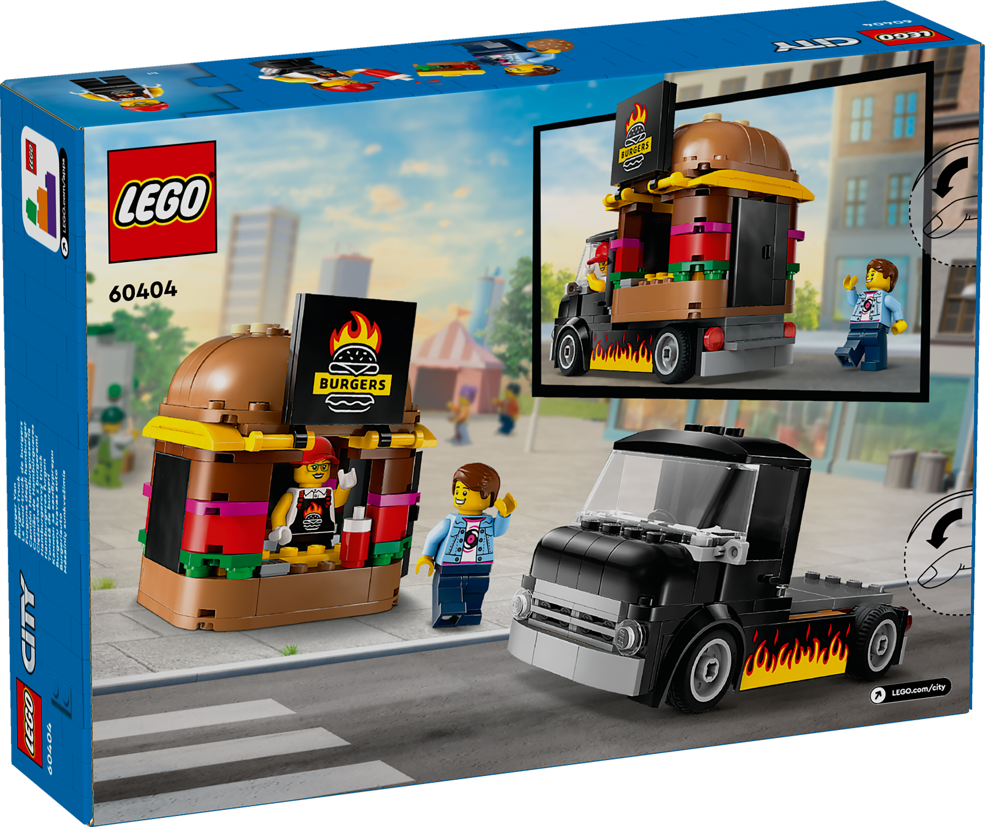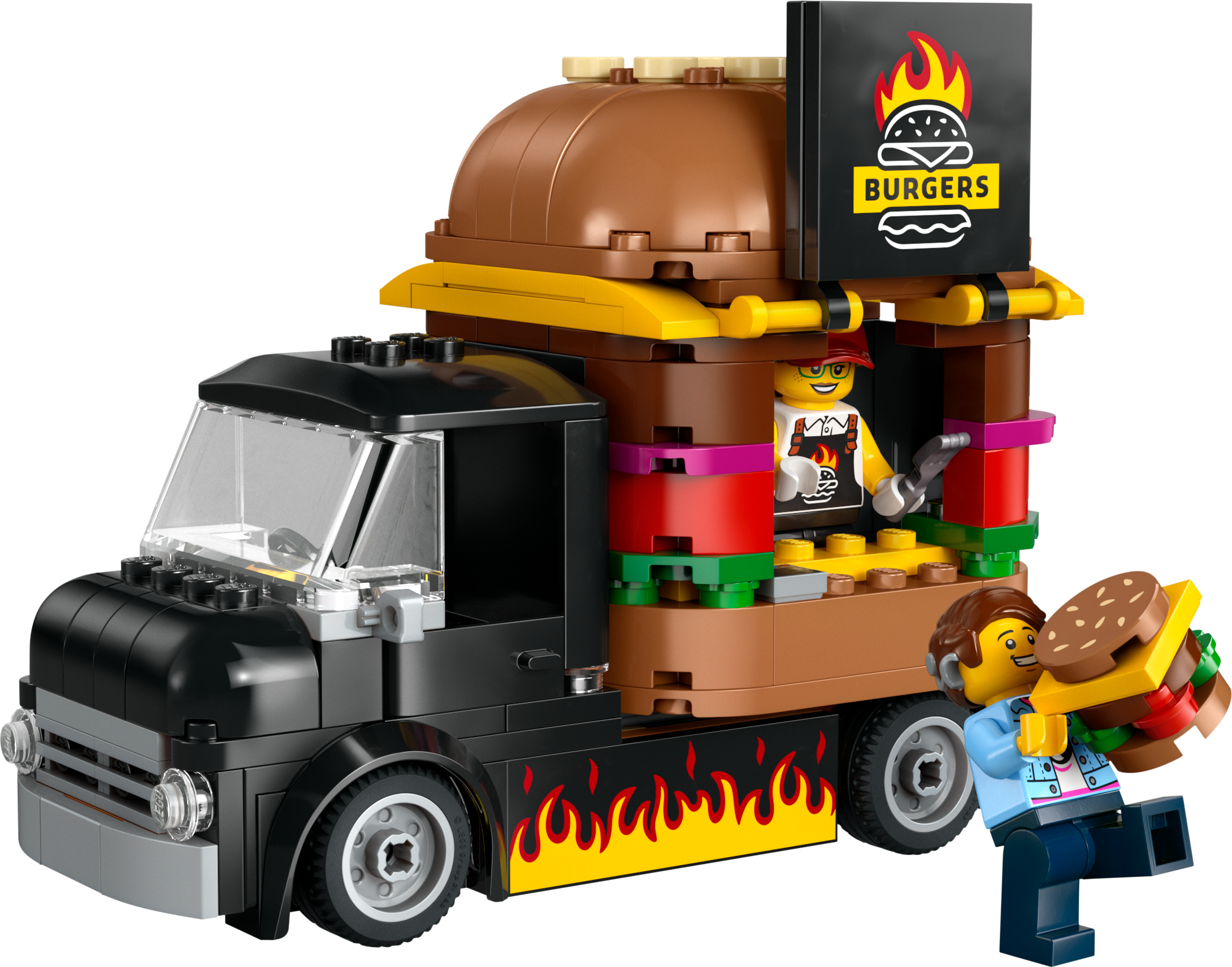 Spielzeug-Foodtruck: Der LEGO® City Burger-Truck ist ein Bauset, mit dem Kinder ab 5 Jahren so tun können, als würden sie Fastfood servieren