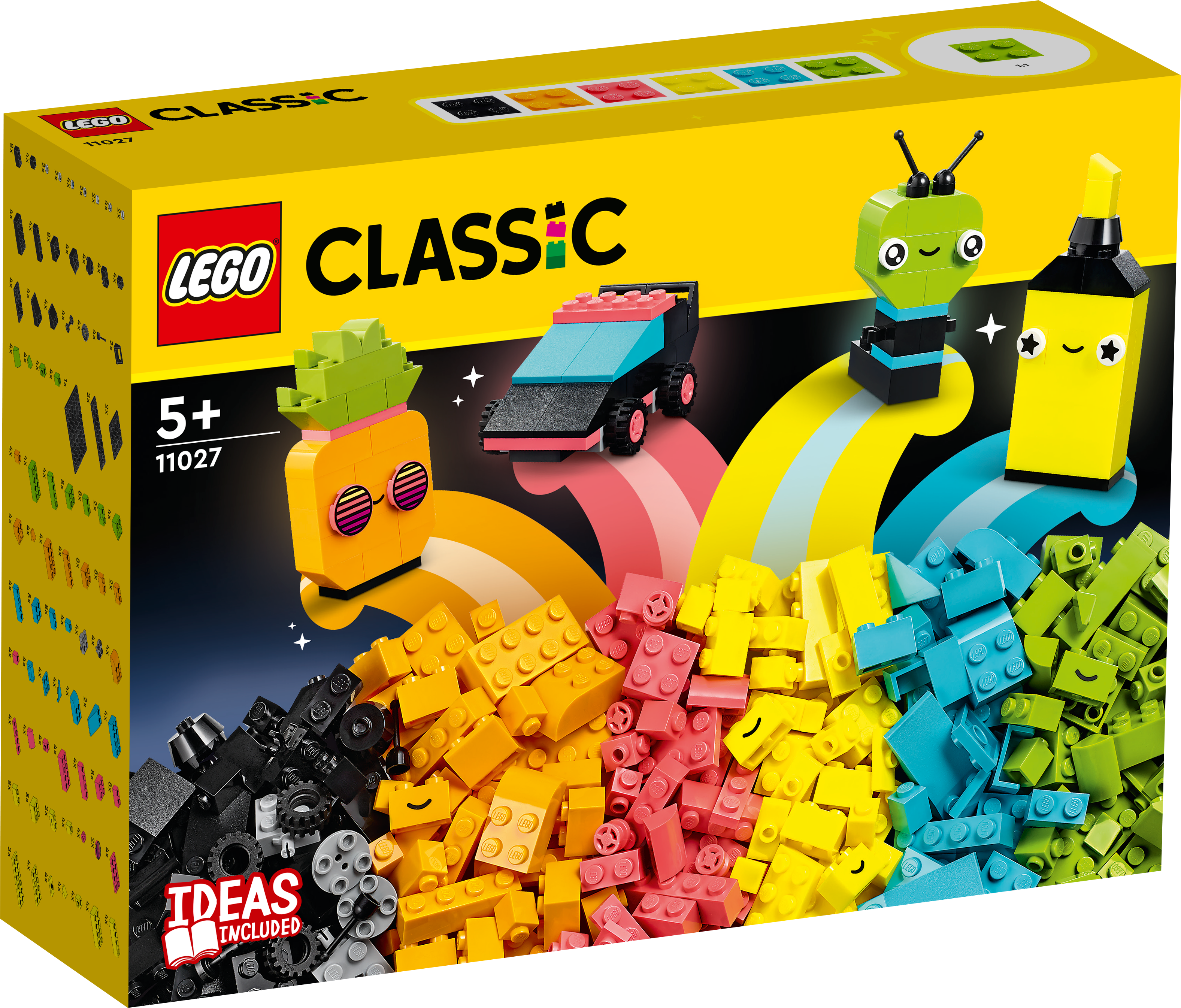 Leuchtende Bausteine: Das LEGO® Classic Neon Kreativ-Bauset (11027) ist ein ebenso lebhaftes wie vielseitiges Bauspielzeug, das Kinder ab 5 Jahren ihre Begeisterung für kreative Modelle ausleben lässt
