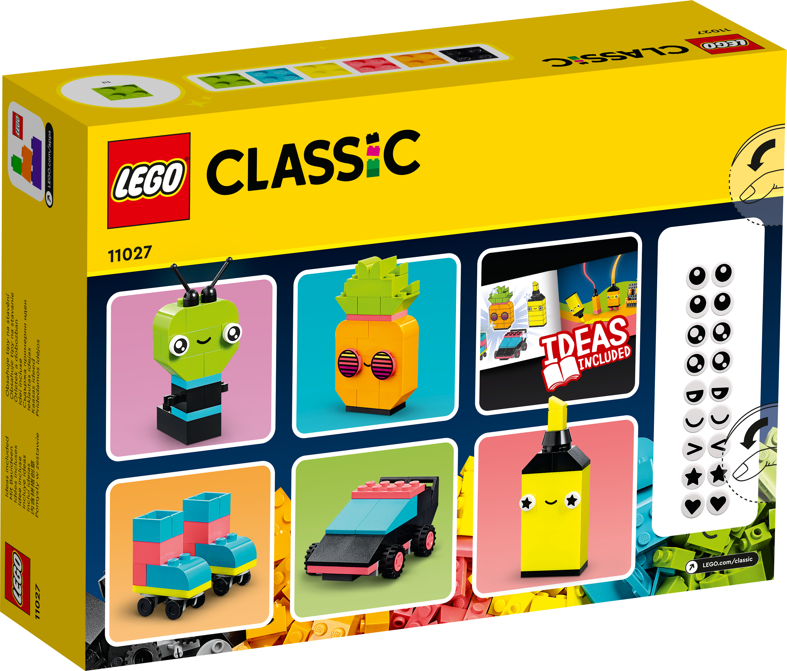 LEGO® Classic Neon Kreativ-Bauset (11027); Bau- und Spielset; viele Teile in lebhaften Farben, aus denen Kinder unter anderem ein Auto, eine Ananas, einen Alien, Rollschuhe und eine ganz eigene Figur bauen können; Geschenk für fantasievolle Kinder ab 5 Jahren (333 Teile)