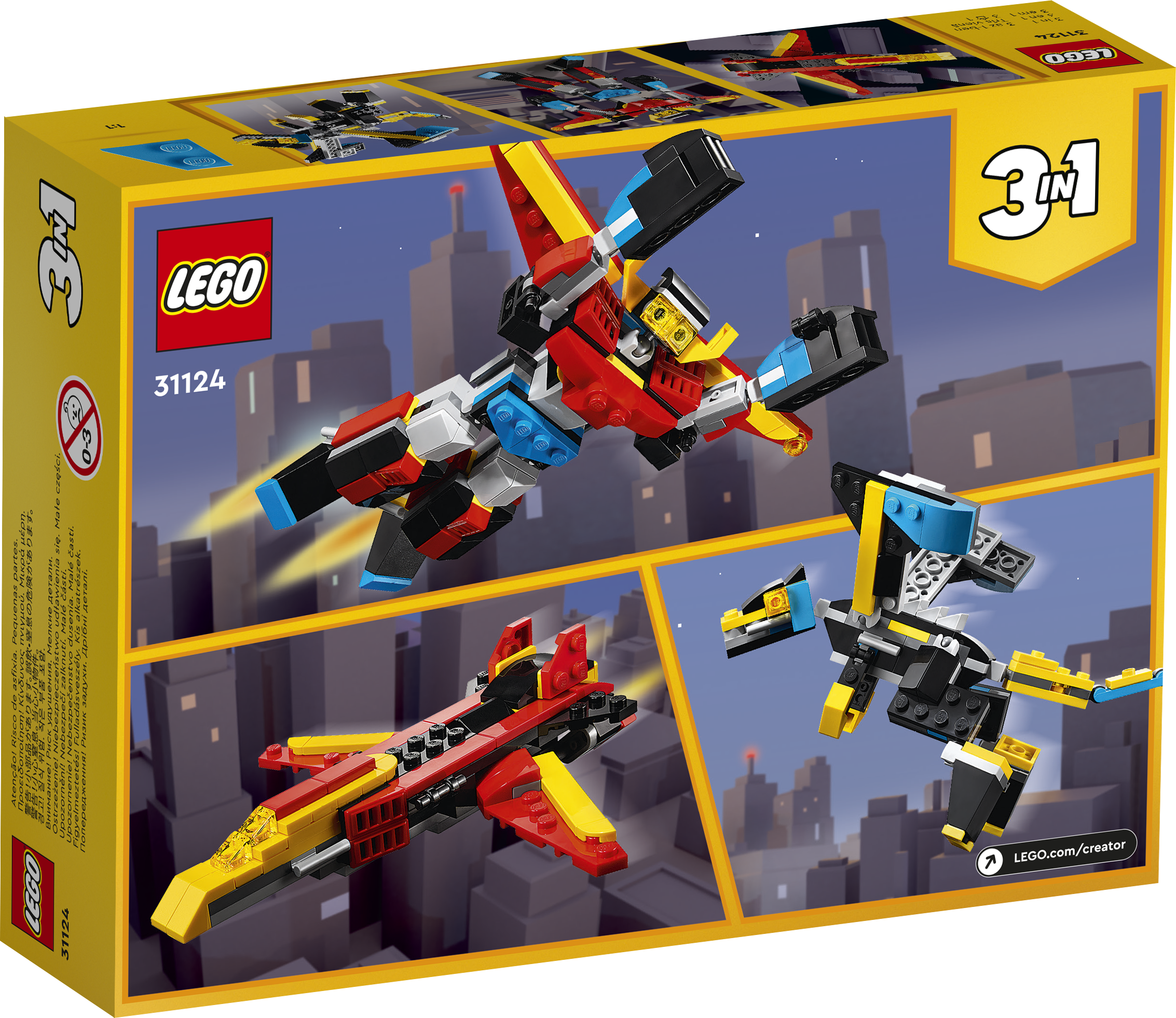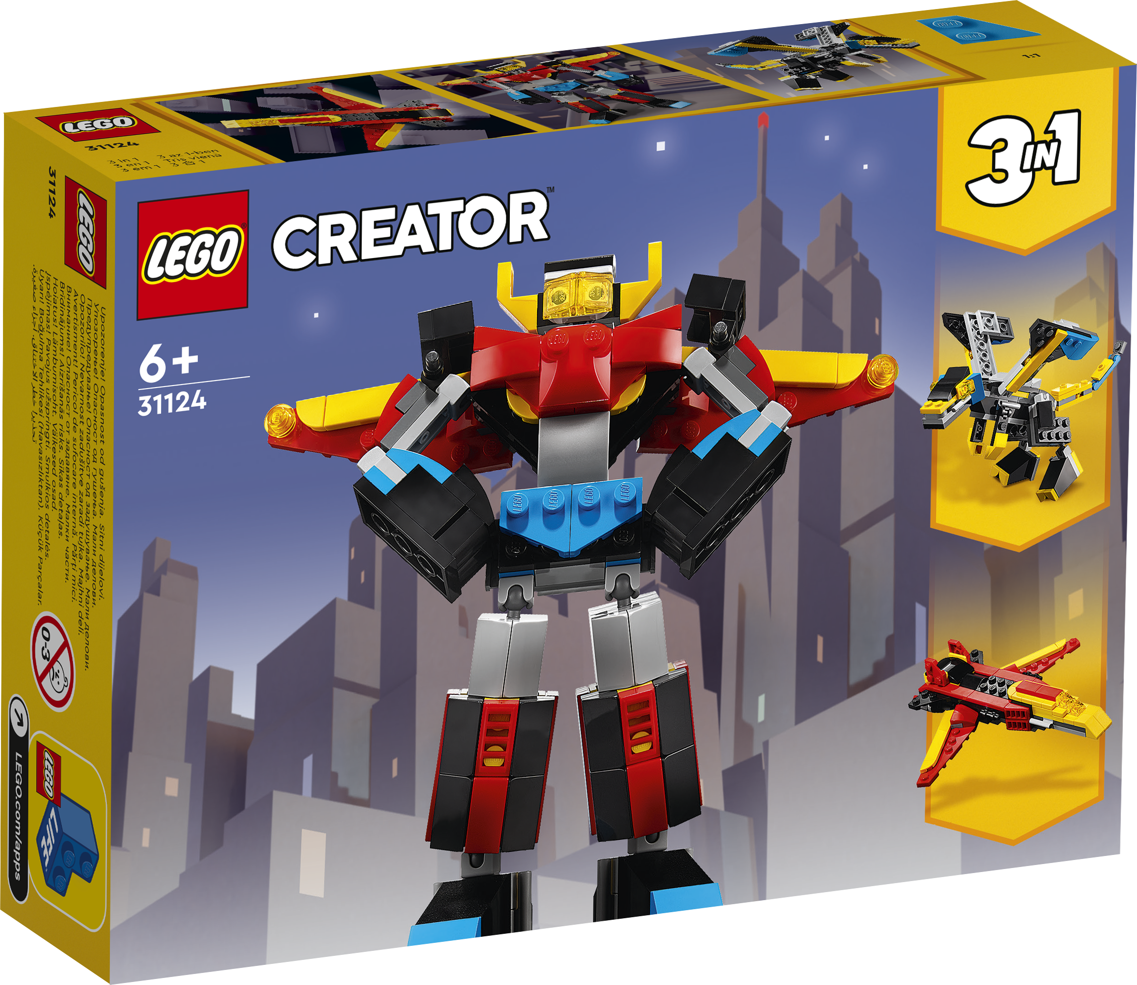 • 3-in-1-Spielzeug: Das Bauset „Super-Mech“ (31124) lässt dein Kind fantasievoll mit den 3 verschiedenen Modellen – einem Mech, einem Drachen und einem Düsenflieger – spielen