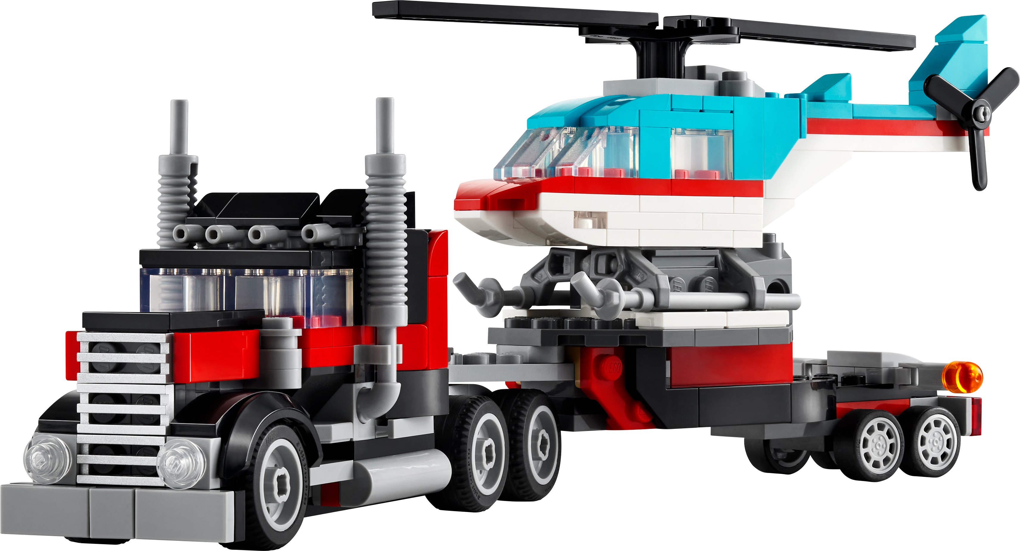 3 x 2 Fahrzeugmodelle in 1 Box: LEGO® Creator Tieflader mit Hubschrauber lässt Jungen und Mädchen ab 7 Jahren 3 x 2 verschiedene Fahrzeuge mit denselben Teilen bauen und immer wieder umbauen
