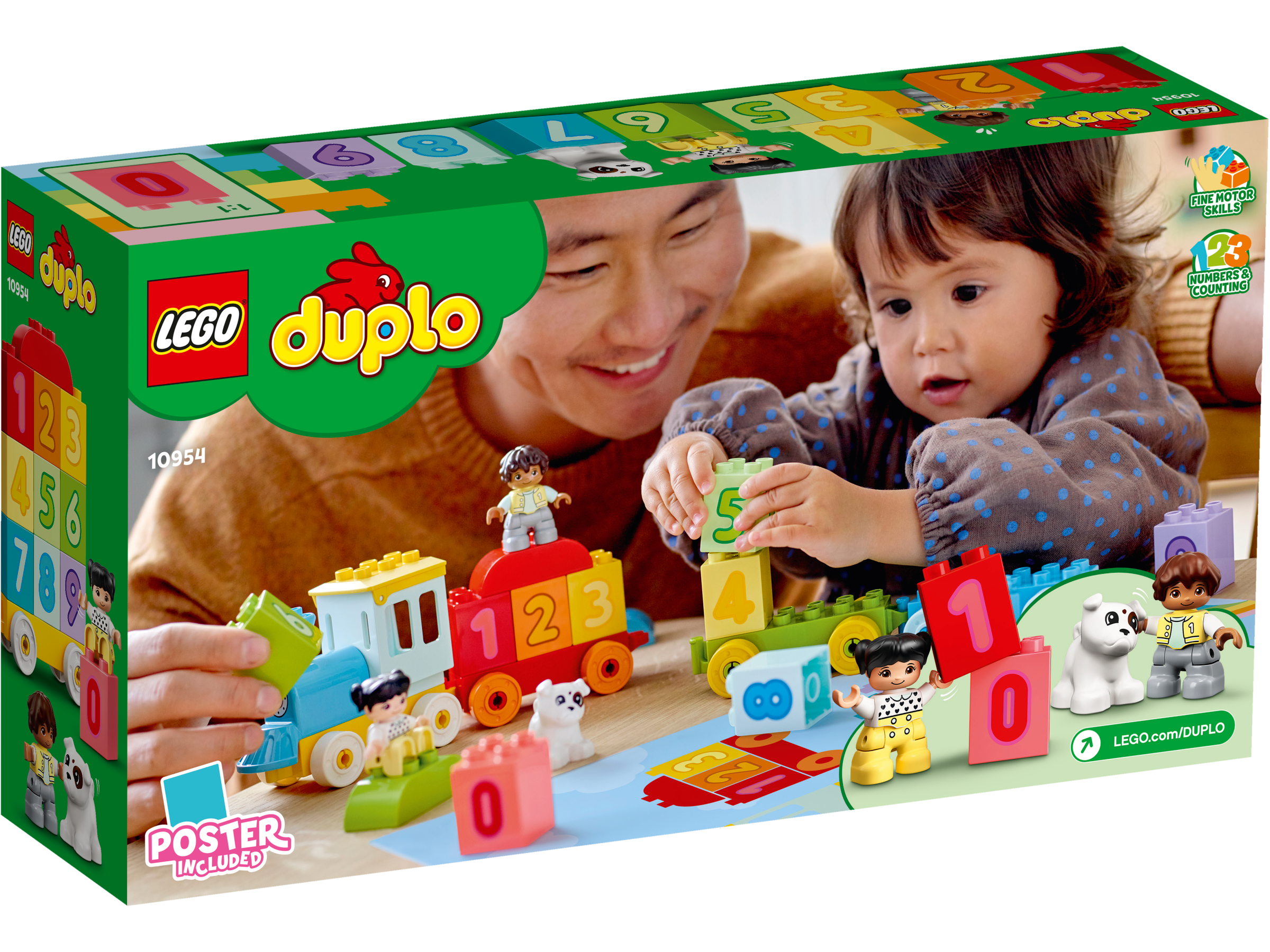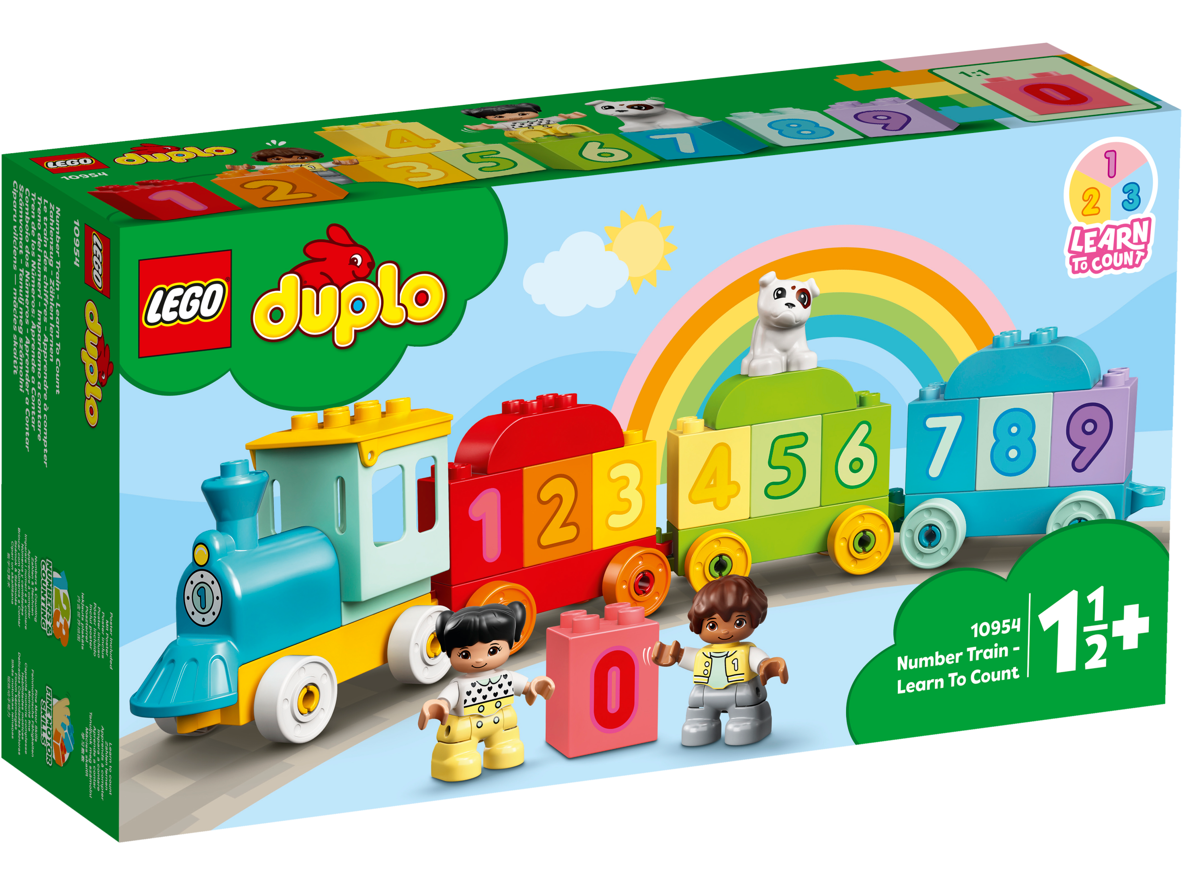 • Stelle Kleinkindern die Zahlen mit LEGO® DUPLO® Mein erster Zahlenzug – Zählen lernen (10954) vor. Diese farbenfrohe neue Version des legendären Zahlenzugs bringt Kindern noch mehr bei.