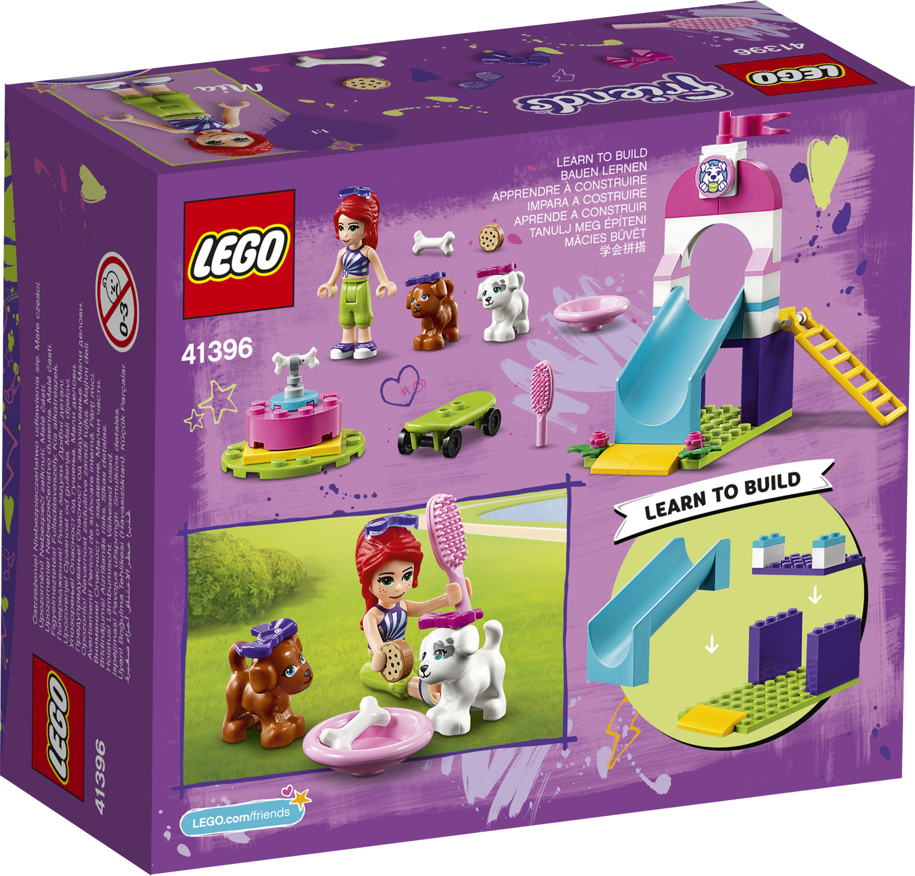• Das farbenfrohe Spielset „Welpenspielplatz“ (41396) zeigt jüngeren Kindern, wie viel Spaß das Bauen mit LEGO® Steinen macht, und wie viel Freude es bereitet, sich um Tiere zu kümmern. Die Starter-Bauplatte erleichtert das Bauen der Welpenrutsche.