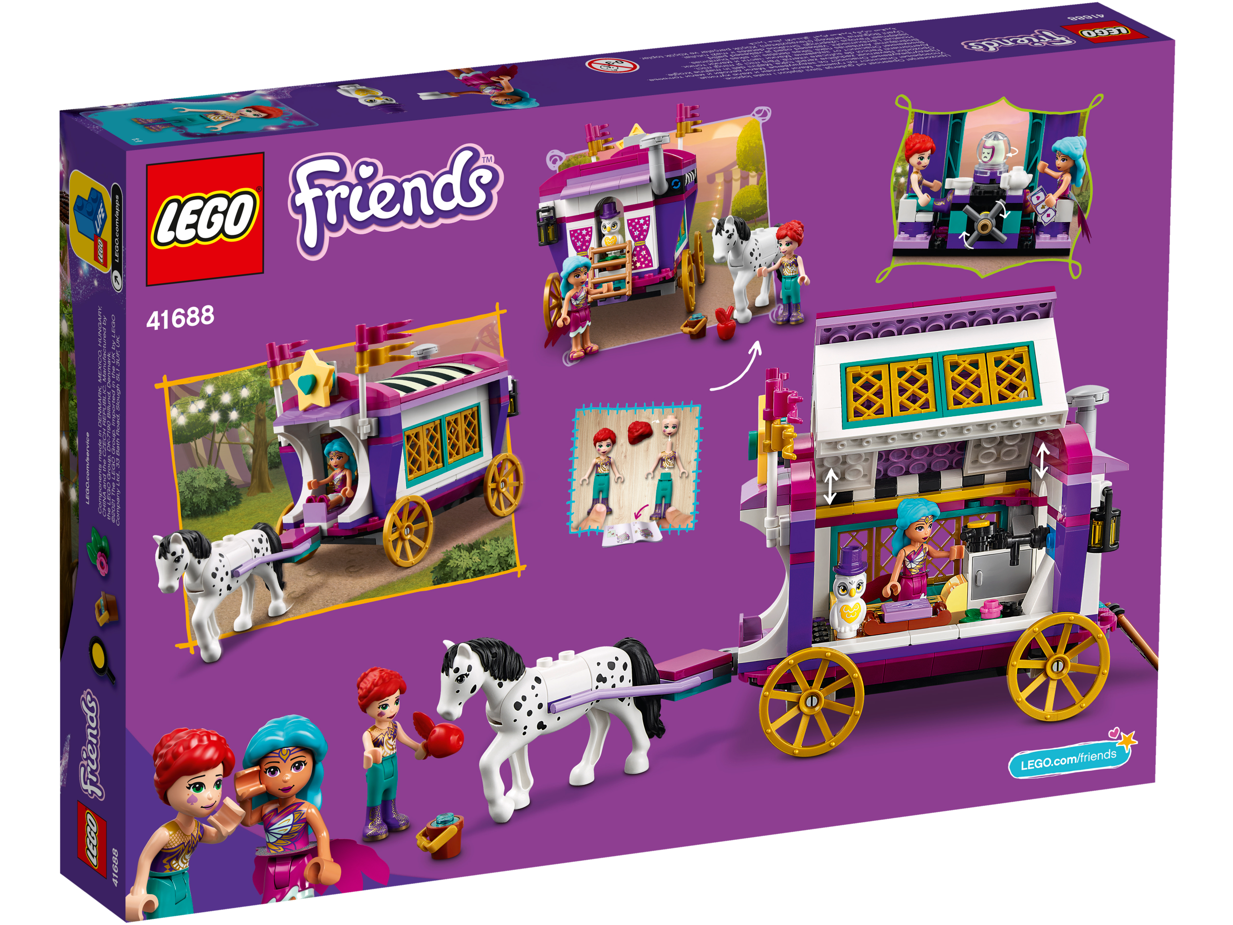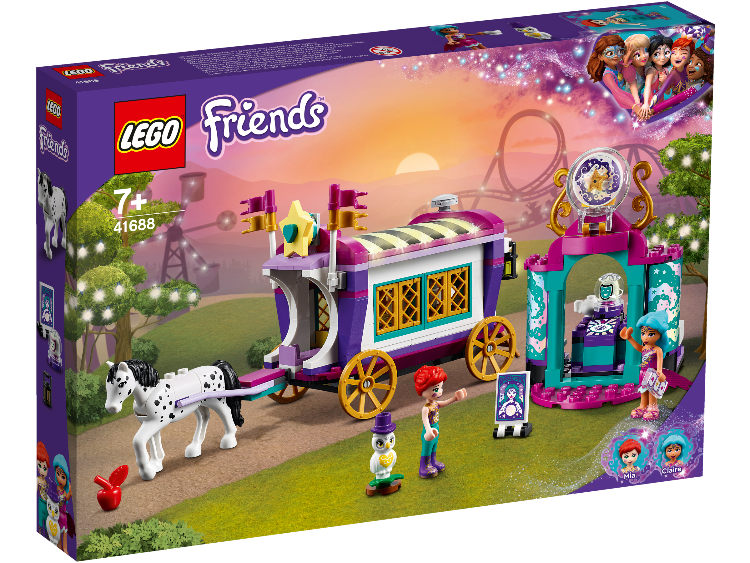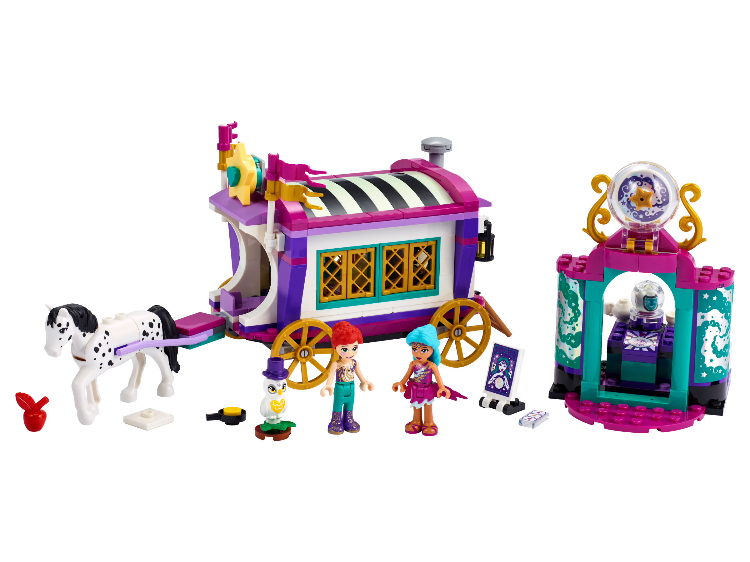 • Der Magische Wohnwagen (41688) lässt Kinder die Magie eines fahrenden Jahrmarkts erleben. Mit dem klassischen Wohnwagen und dem Zelt der Wahrsagerin können Kinder viele magische Rollenspiele darstellen.