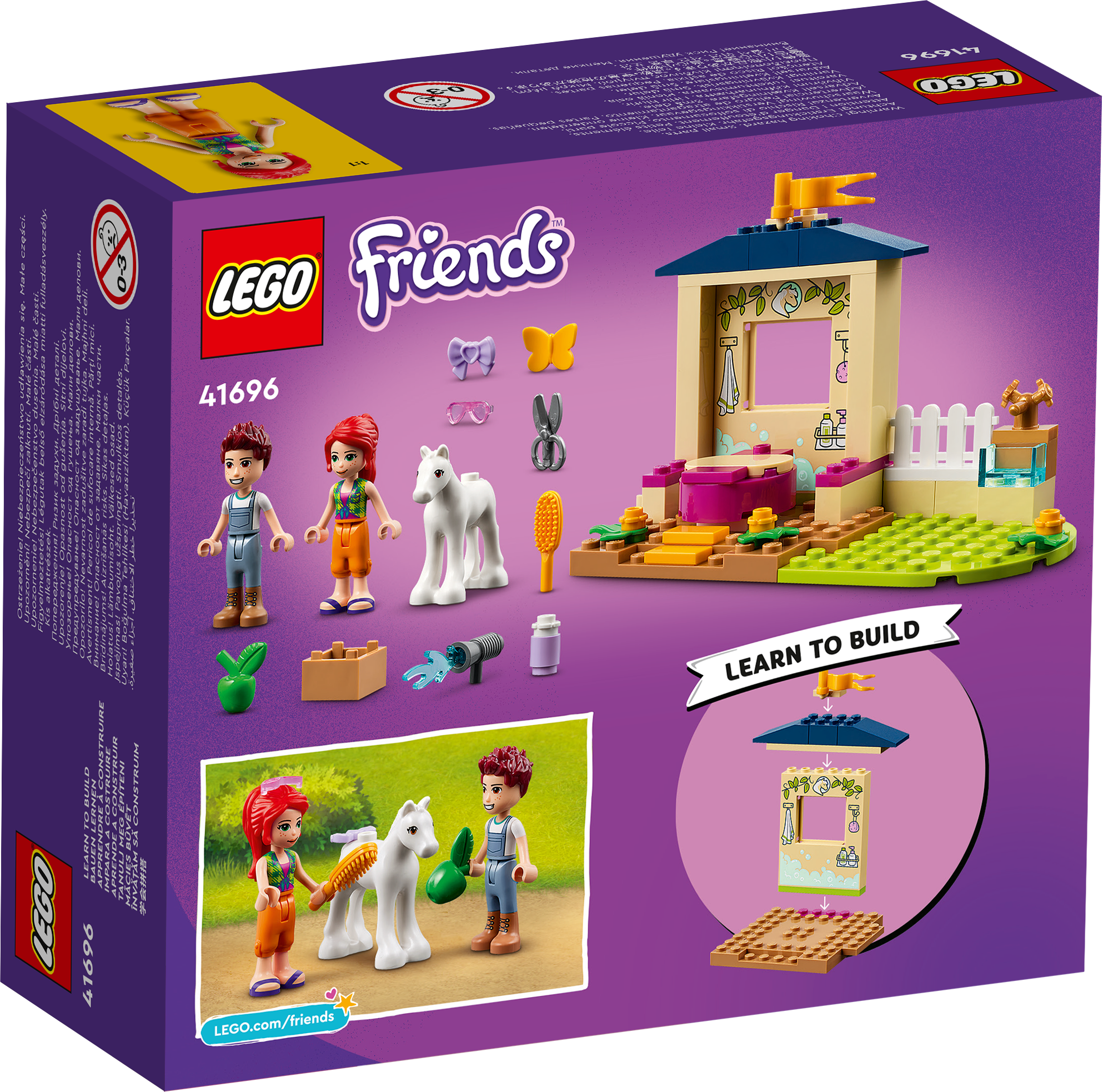 Rollenspiele mit Tieren: Dieses kreative Geschenk lässt dein Kind sotun, als würde es das LEGO® Friends Pony abduschen, die Mähne einklammern und das Fell striegeln und das Pferd dann mit einem Apfel belohnen