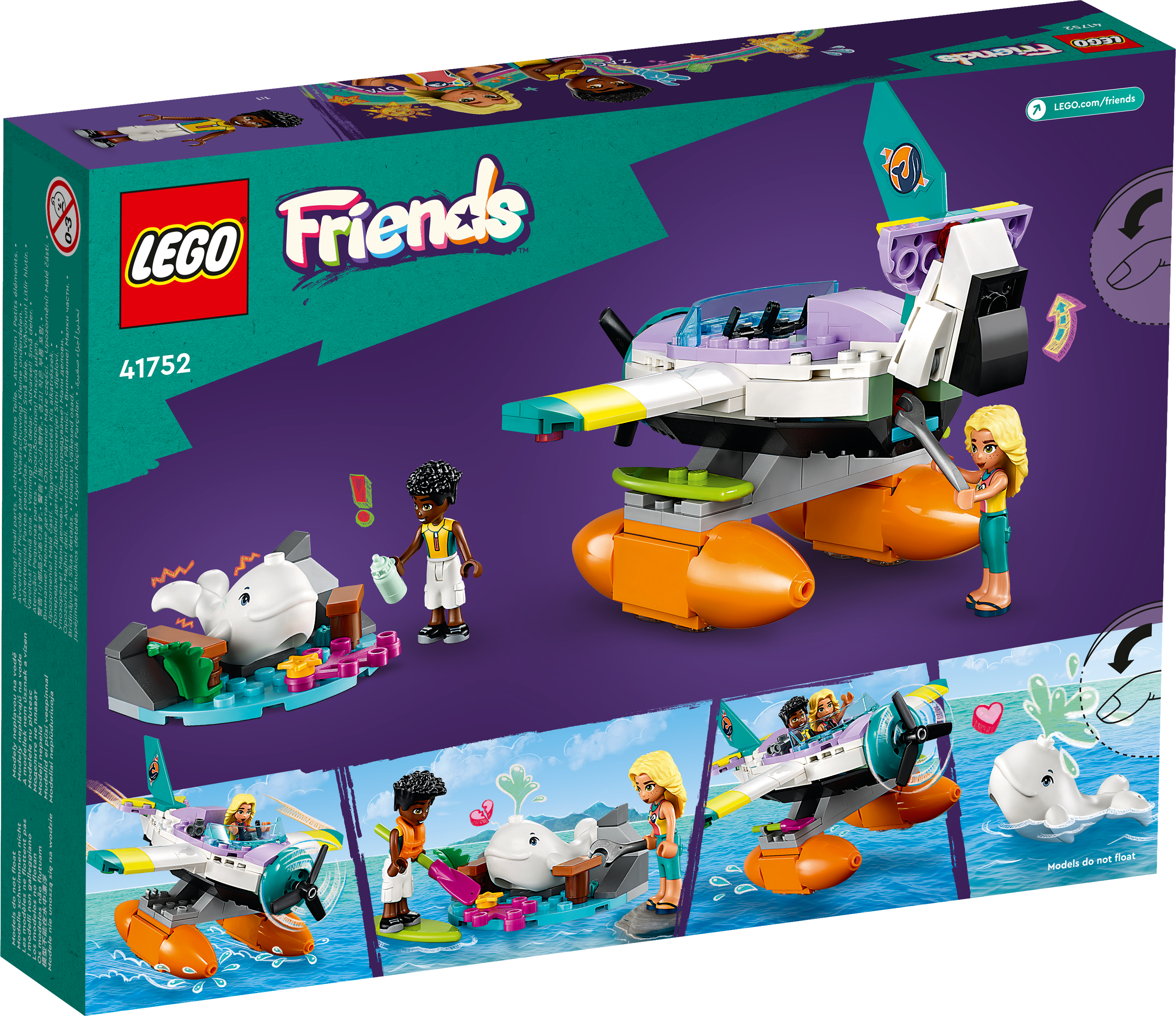 LEGO® Friends Seerettungsflugzeug (41752); Bau- und Spielset; kreatives Spielerlebnis für Kinder ab 6 Jahren, beinhaltet 2 Spielfiguren, einen Wal und jede Menge Zubehör; cooles Geschenk für Kinder, die Meeresbewohner lieben (203 Teile)