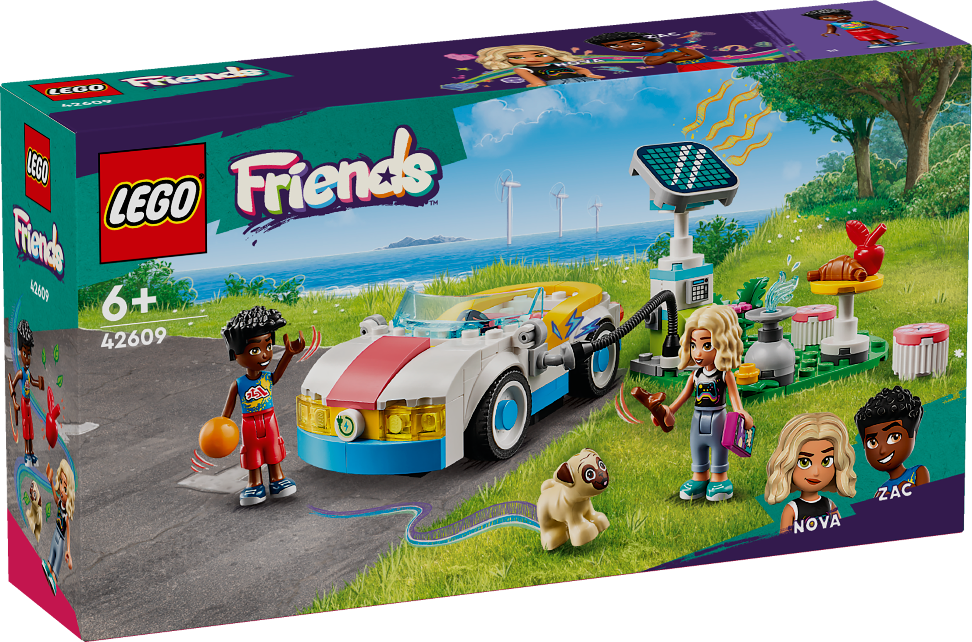 LEGO® Friends E-Auto mit Ladestation (42609); Spielzeugauto für Abenteuer und Rollenspiele mit den Spielfiguren Nova und Zac; Geschenkidee für Mädchen und Jungen ab 6 Jahren