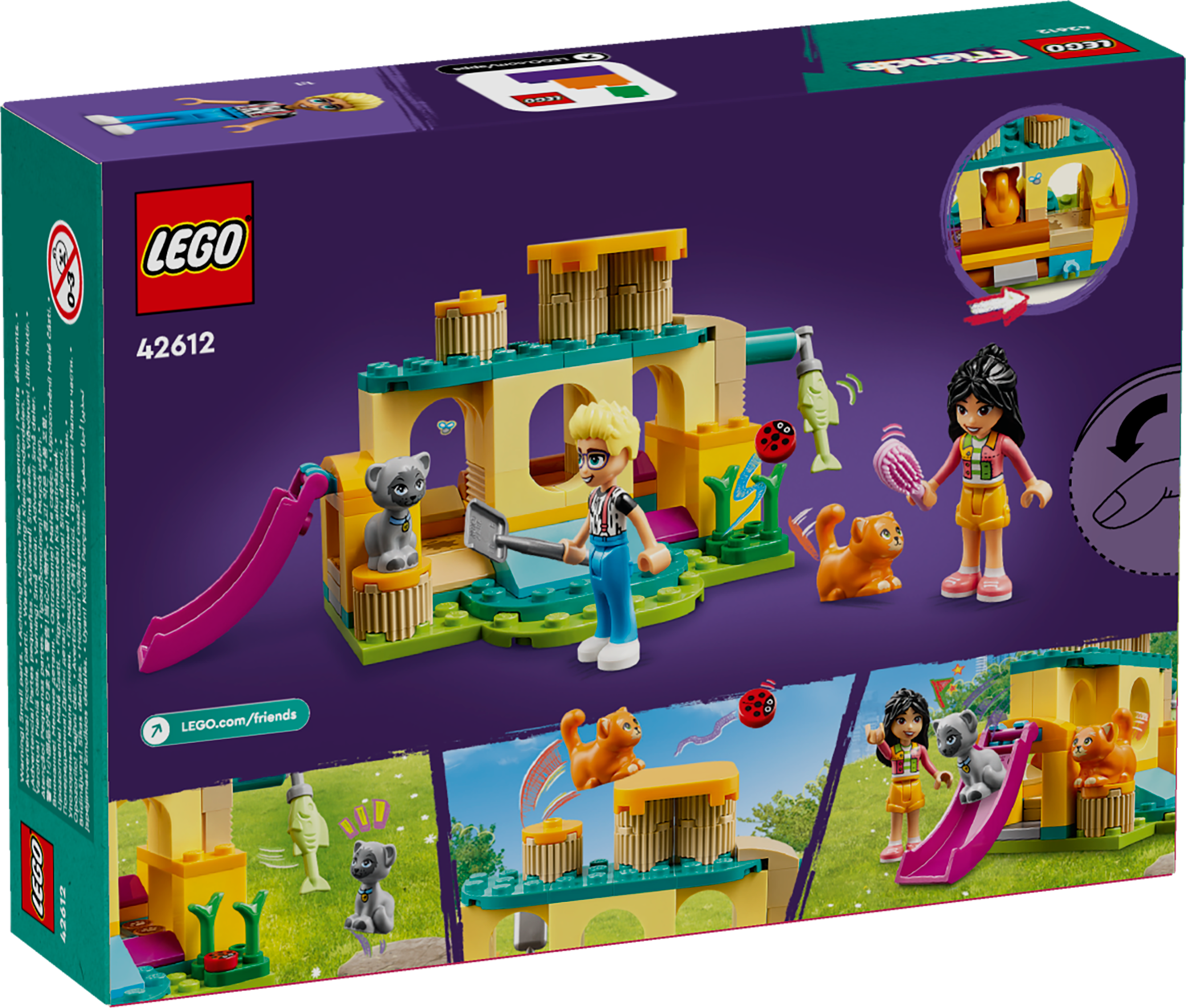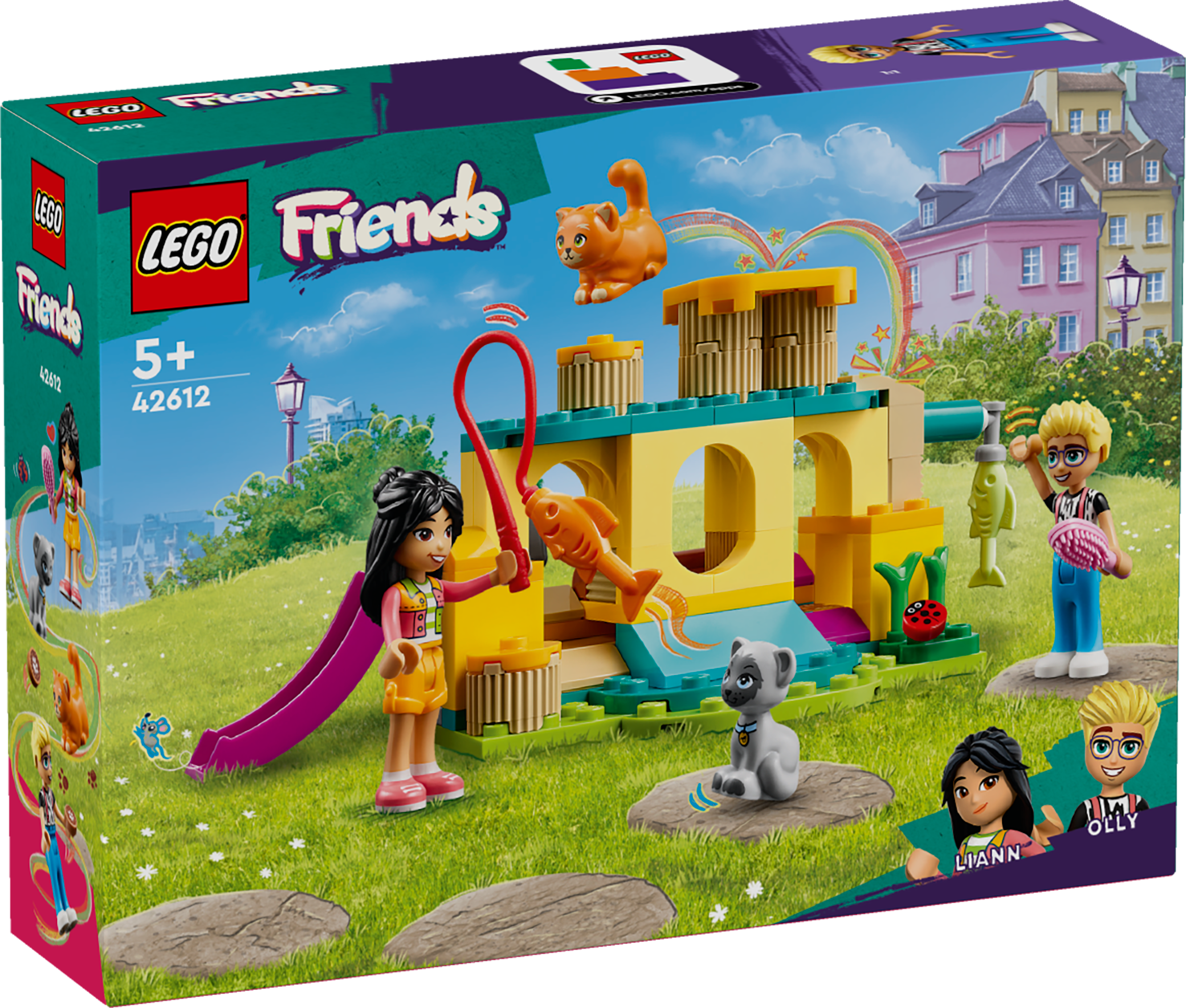 LEGO® Friends Abenteuer auf dem Katzenspielplatz (42612); Set mit Spielzeugtieren und Spielfiguren; Geschenkidee für Mädchen und Jungen ab 5 Jahren; Rollenspiele mit den Spielfiguren Olly und Liann
