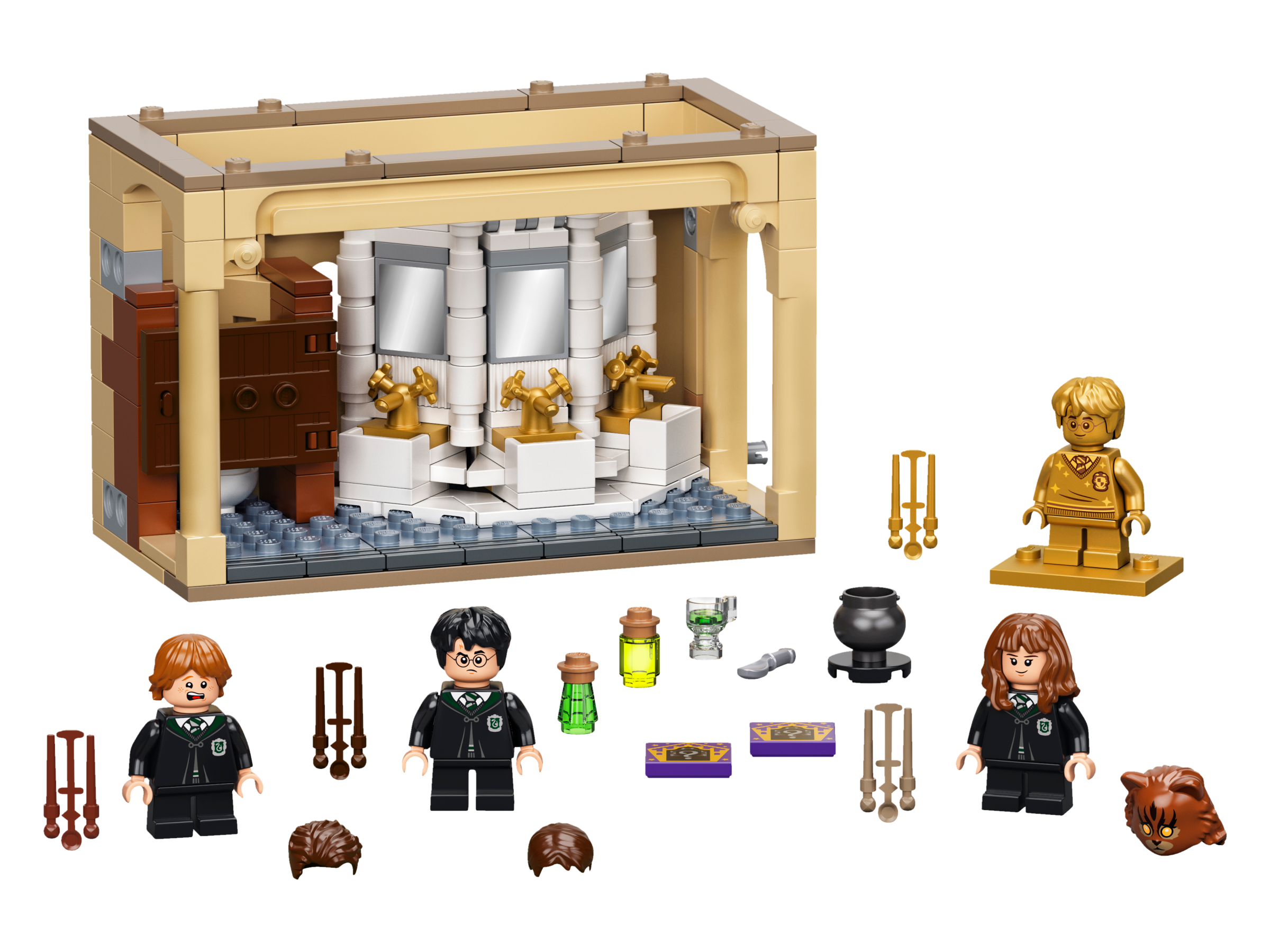 • Beinhaltet die Minifiguren Harry Potter™, Hermine Granger™ und Ron Weasley™, die baubare Toilette der Maulenden Myrte und authentisches Zubehör.