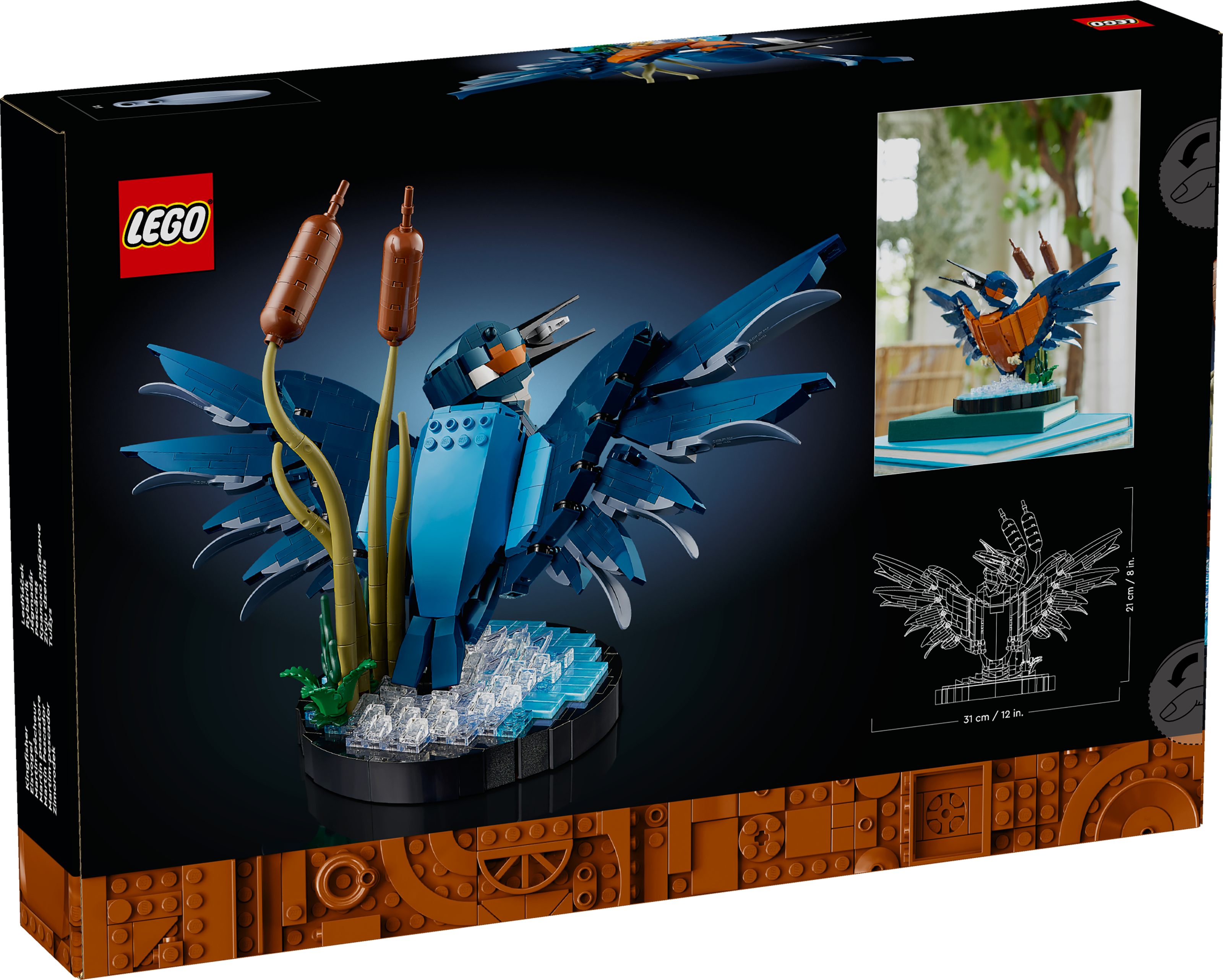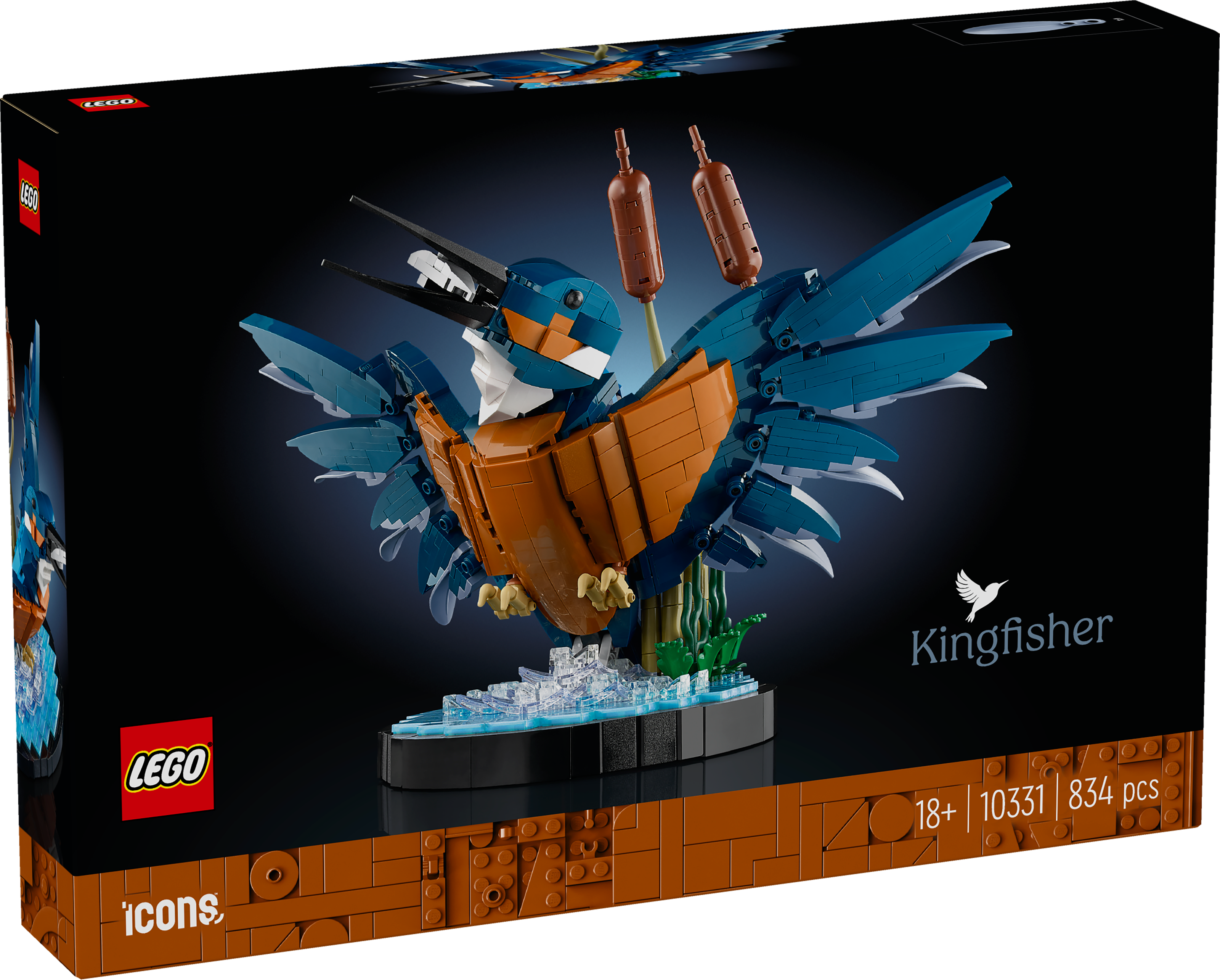 Erschaffe einen imposanten Blickfang für dein Wohnzimmer oder Büro mit diesem Bauset für Erwachsene. Der LEGO® Icons Eisvogel (10331) ist ein grandioses Geschenk für Vogelfreunde und ein fesselndes Projekt für Neulinge und erfahrene LEGO Baumeister. Das Modell stellt einen Eisvogel dar, der für sein markantes Gefieder und seine beachtlichen Jagdkünste bekannt ist. In dieser Darstellung taucht er gerade mit einem erbeuteten Fisch wieder aus dem Wasser auf. Die Wasserkulisse besteht zum Teil aus baubarem Schilf und dient zugleich als Ständer. Bring den Kopf und die Krallen in eine Pose, die dir besonders gefällt, und stell den Vogel dann aus, um ihn von allen bestaunen zu lassen. Die inspirierende Kollektion der LEGO Bausets für Erwachsene bietet dir Raum zum Entspannen. Und in der LEGO Builder findest du eine digitale Version der Bauanleitung, die diesem Set beiliegt.