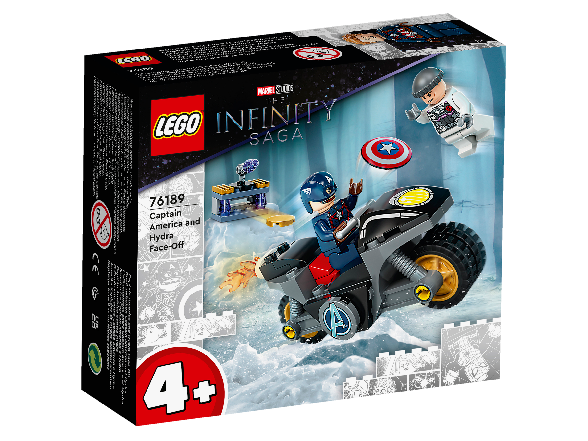 Lass junge Superhelden mit diesem klassischen LEGO® Marvel Spielset Kreativität und Baufähigkeiten entwickeln. LEGO Marvel – Duell zwischen Captain America und Hydra (76189) ist für Kinder ab 4 Jahren gedacht. Das entwicklungsfördernde Set lässt Kinder miteinander spielen.Ein toller Anfang für kleine Actionhelden4+ Sets sind für junge Baumeister gedacht und vermitteln Kindern mit vielen spannenden Details ein tolles Spielerlebnis. Jeder Beutel in der Box enthält die Teile für ein ganzes Modell und eine Figur, damit Kinder rasch bauen und spielen können! Das schon teilweise zusammengesetzte Motorrad lässt Kinder selbstständig bauen. Dank der witzigen Bildanleitung lassen sich die Modelle ganz intuitiv zusammensetzen, ohne lesen können zu müssen.Spaß für die ganze FamilieEin LEGO 4+ Spielset ist eine tolle Belohnung für jedes Kind – und für die ganze Familie. Erwachsene können ihre Baukünste weitergeben und wichtige Entwicklungsschritte der aufstrebenden Baumeister miterleben.