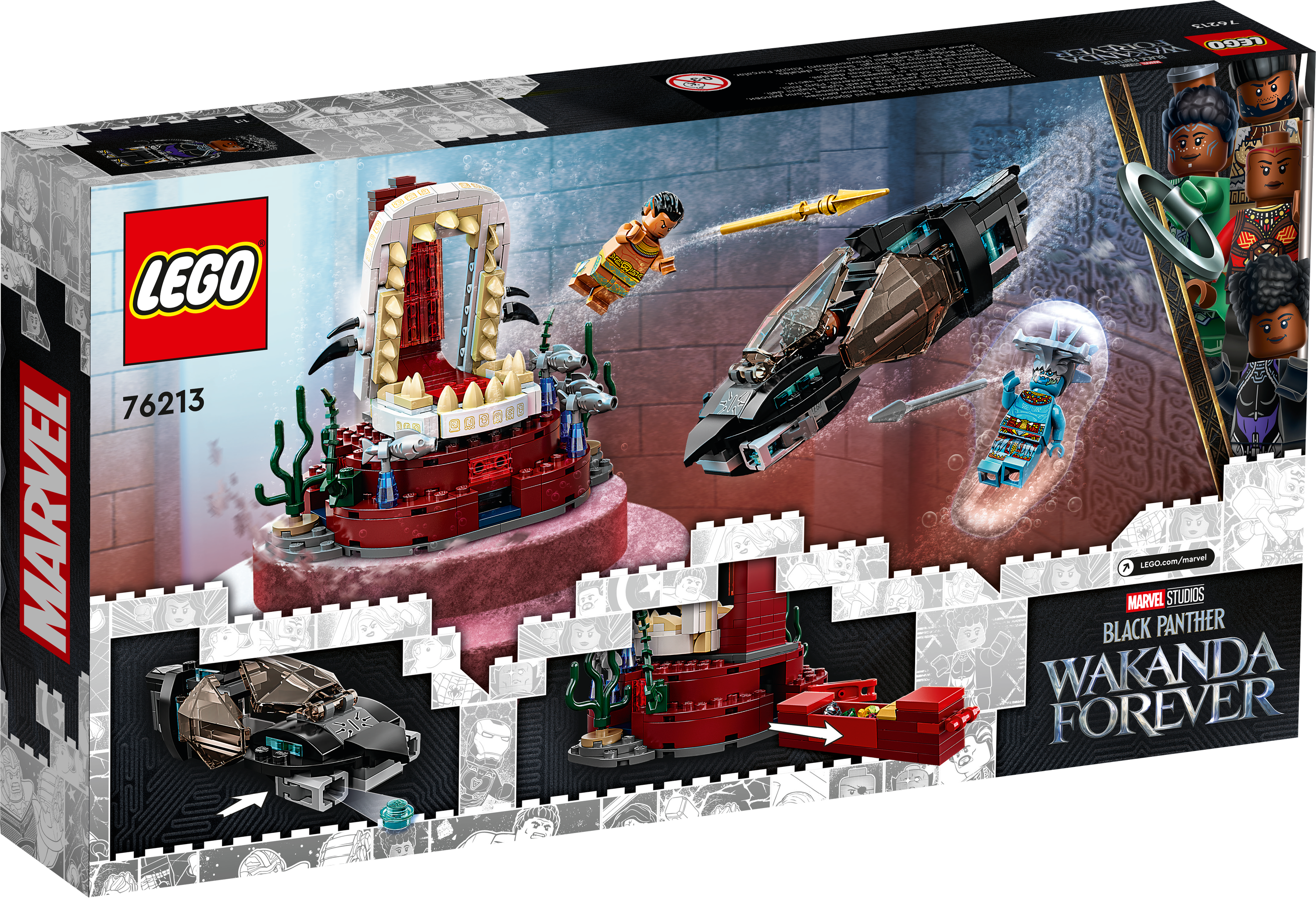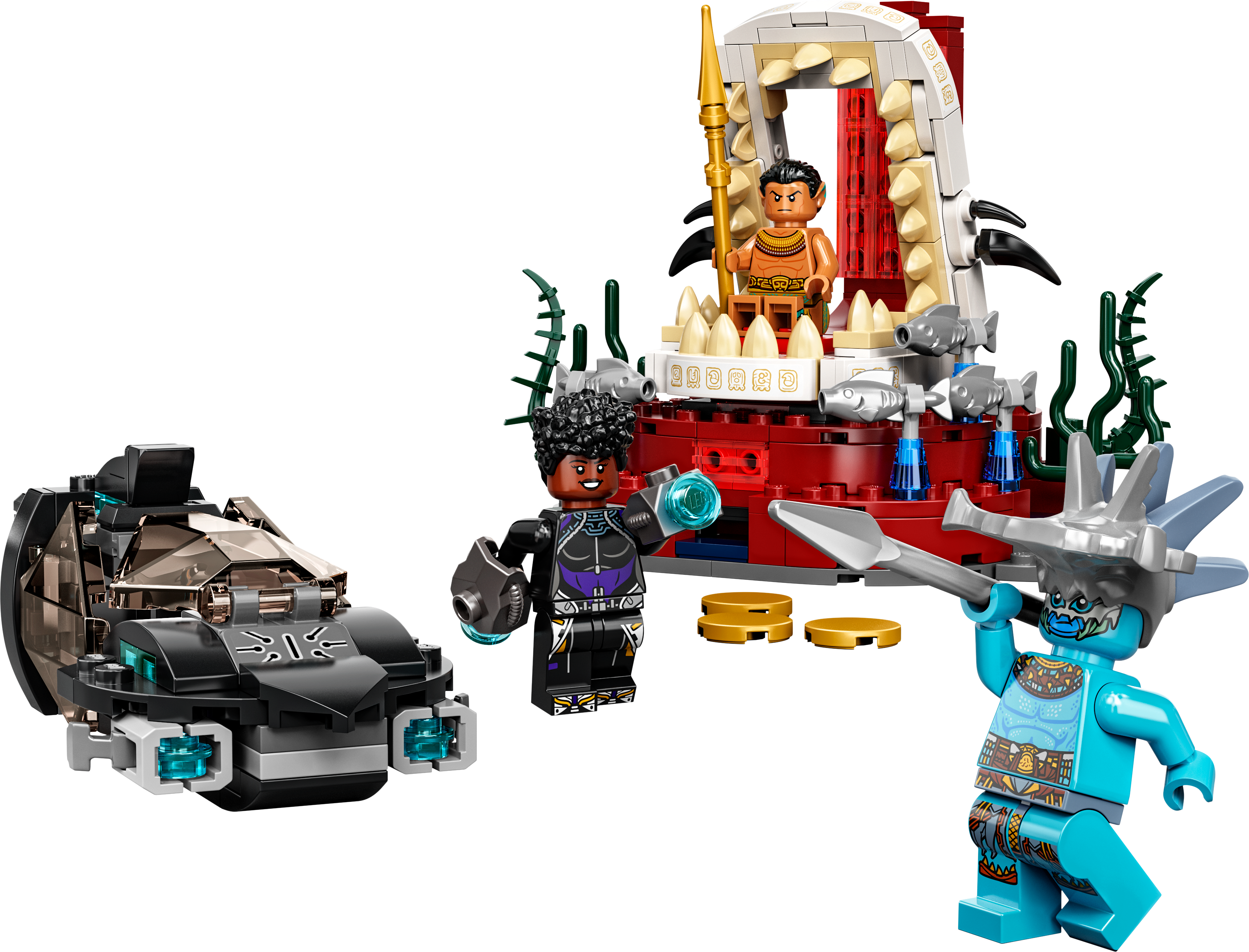 Marvel Charaktere: Beinhaltet die Minifiguren Shuri, Attuma und König Namor, ein baubares U-Boot, einen Thronsaal, Seetang und Fische