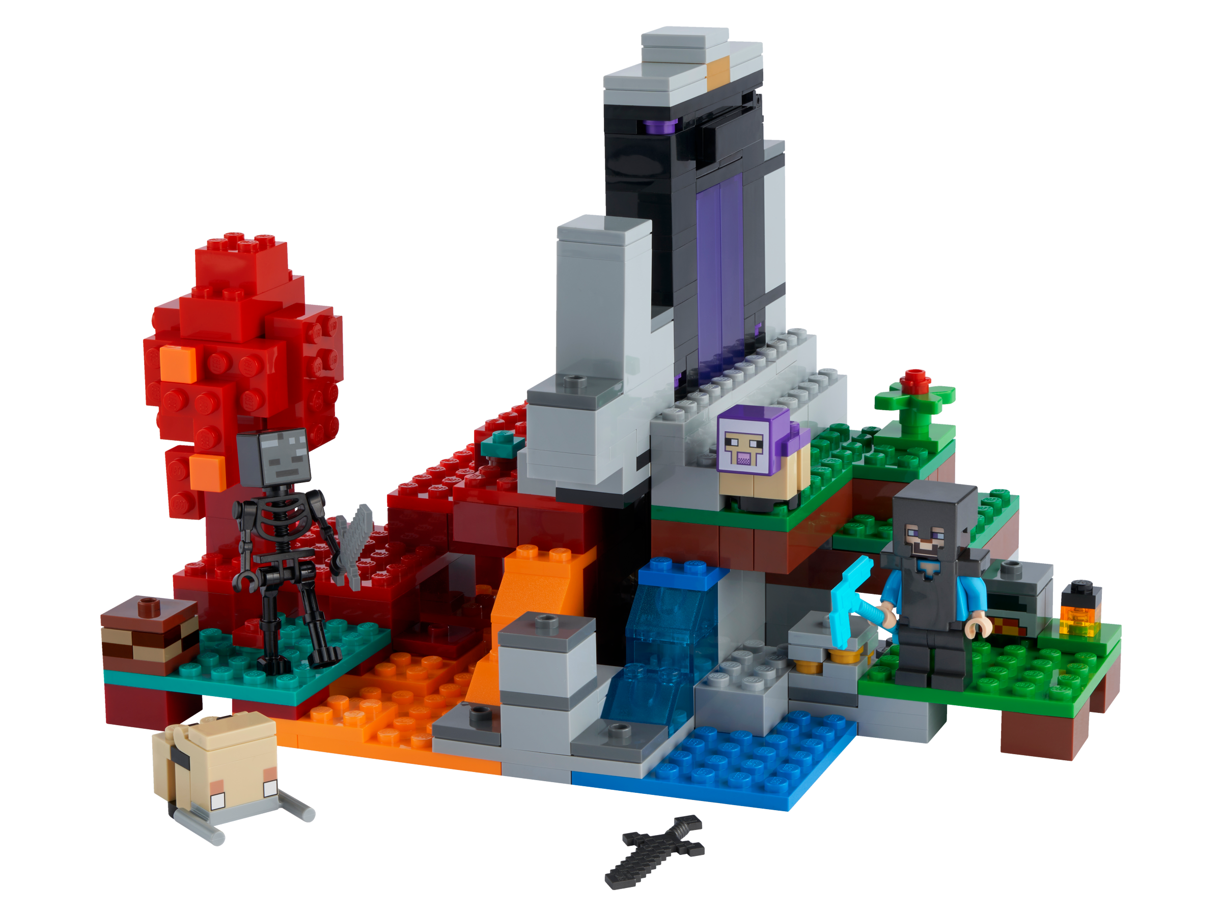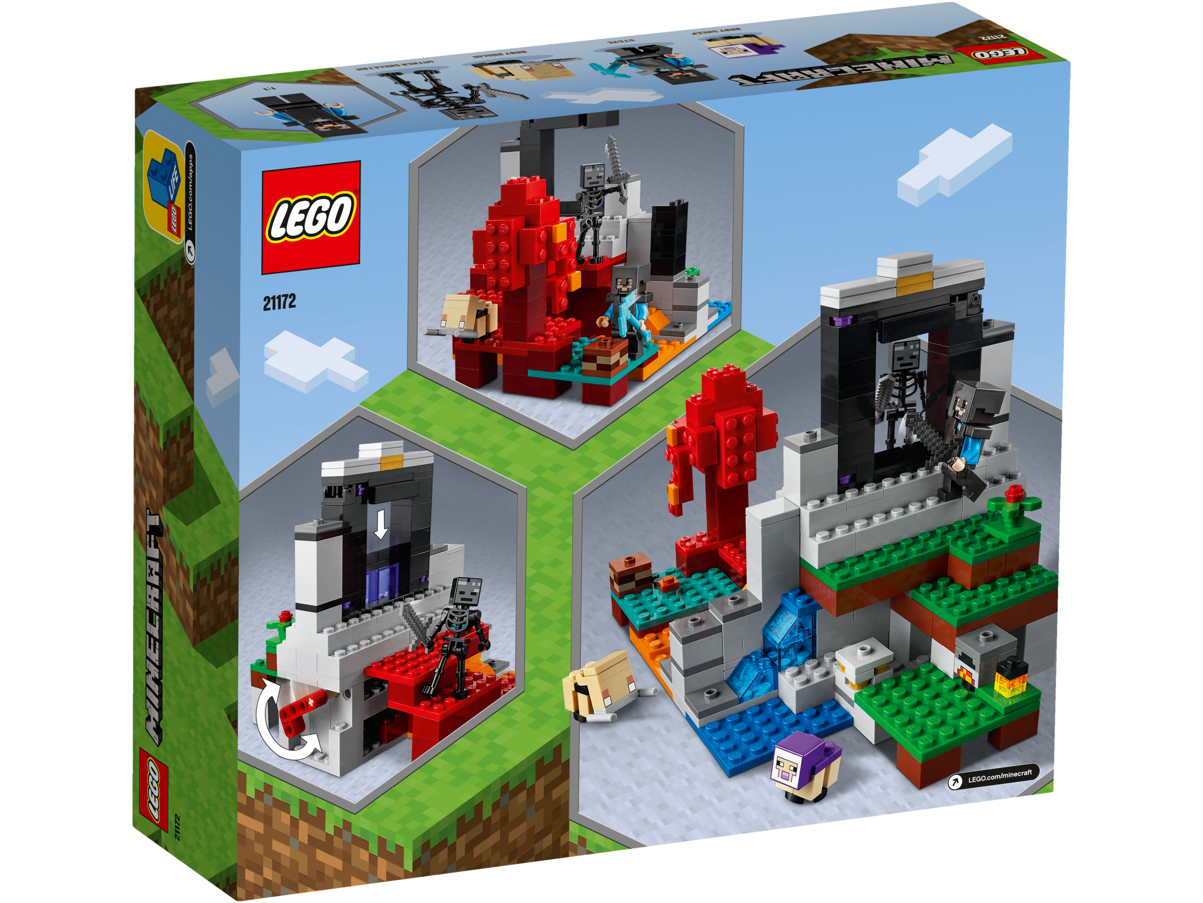 • LEGO® Minecraft™ – Das zerstörte Portal (21172) führt begeisterte Minecraft Spieler durch ein altes Portal in ein niemals endendes mehrdimensionales Abenteuer.