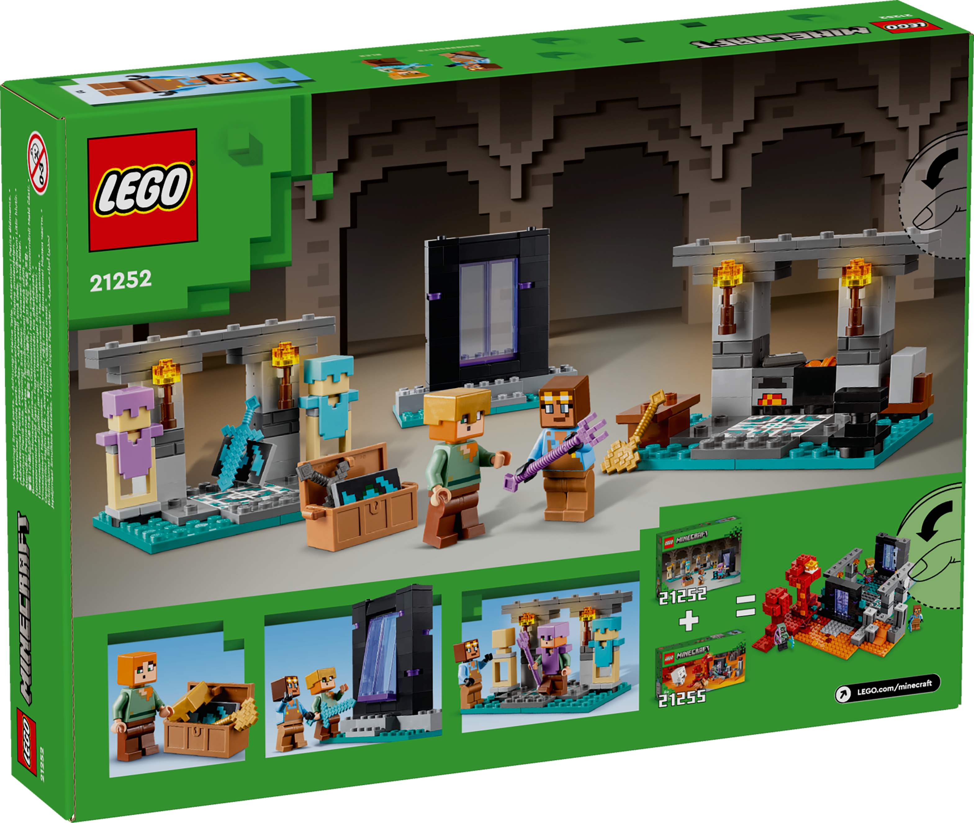 Noch mehr Spielspaß: Die Minecraft® Waffenkammer ist zwar ein völlig eigenständiges Spielzeug, sie lässt sich aber auch mit anderen separat erhältlichen LEGO® Minecraft Spielsets kombinieren, vor allem mit Hinterhalt am Netherportal (21255)