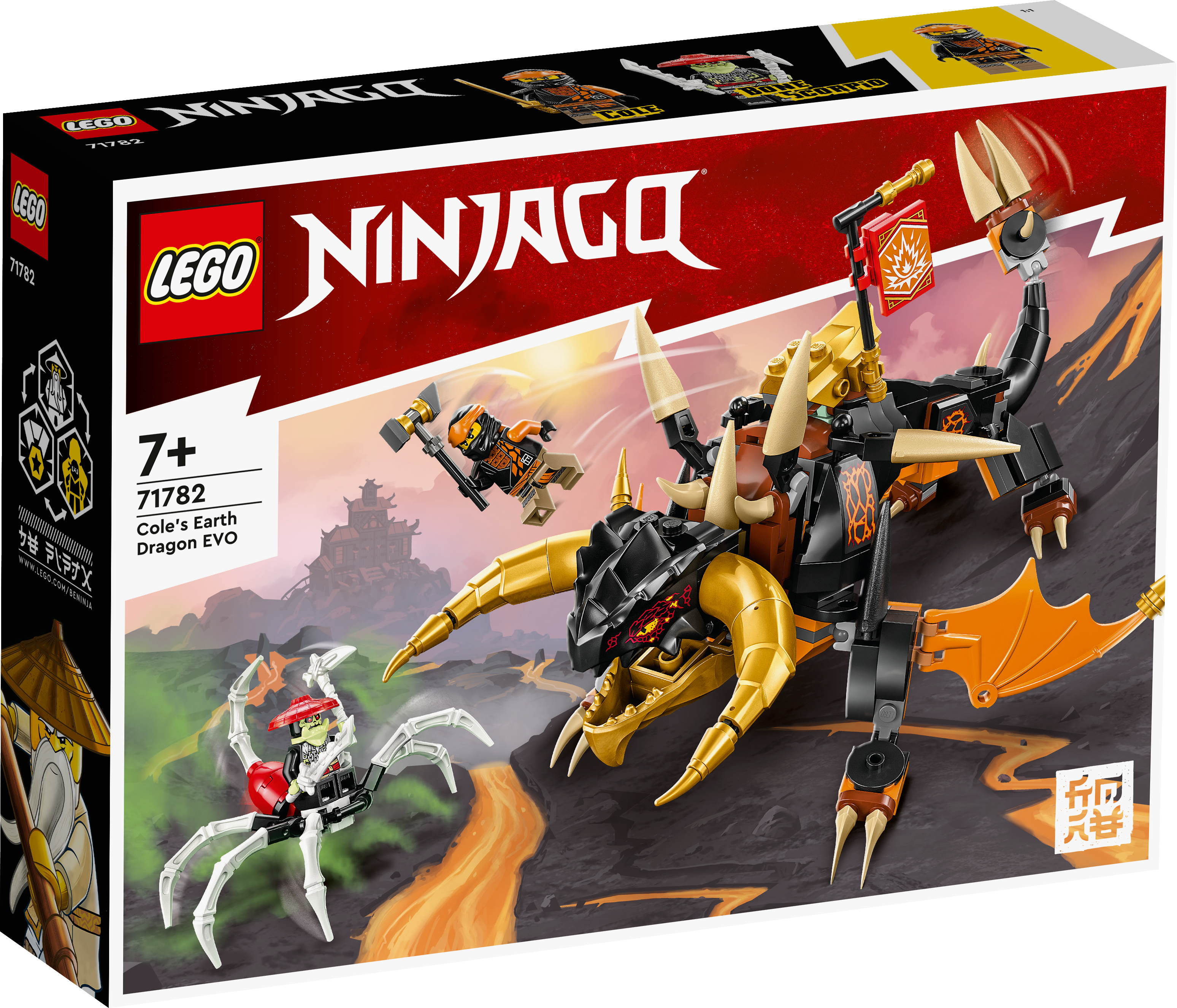 LEGO® NINJAGO® Coles Erddrache EVO (71782) ist ein tolles Spielset, das Kinder ab 7 Jahren packende Duelle austragen lässt. Während des Actionspektakels kann dein Kind den beweglichen Drachen noch größer und stärker machen, indem es ihm goldene Flügel, Hörner und einen Schwanz verpasst. Coole Ninja-Spielzeuge für Kinder Das Spielset beinhaltet 2 Minifiguren: Cole ist mit einem goldenen Katana ausgerüstet, und der Skelett-Skorpion schwingt eine Sense und trägt weitere Skelett-Krieger-Ausrüstung. Der Skelett-Skorpion kann auch auf seinem 6-beinigen Skorpion-Monster ins Duell reiten. Wenn dein Kind diese Herausforderung meistert, wird es mit dem Banner der Stärke belohnt. Dieses Banner ist ein tolles Sammlerstück. Cooles digitales Bauerlebnis für LEGO Baumeister Die LEGO Builder App begleitet dich und dein Kind auf ein leichtes und intuitives Bauabenteuer. Vergrößere und drehe 3D-Ansichten der Modelle, speichere Sets und verfolge deinen Baufortschritt.