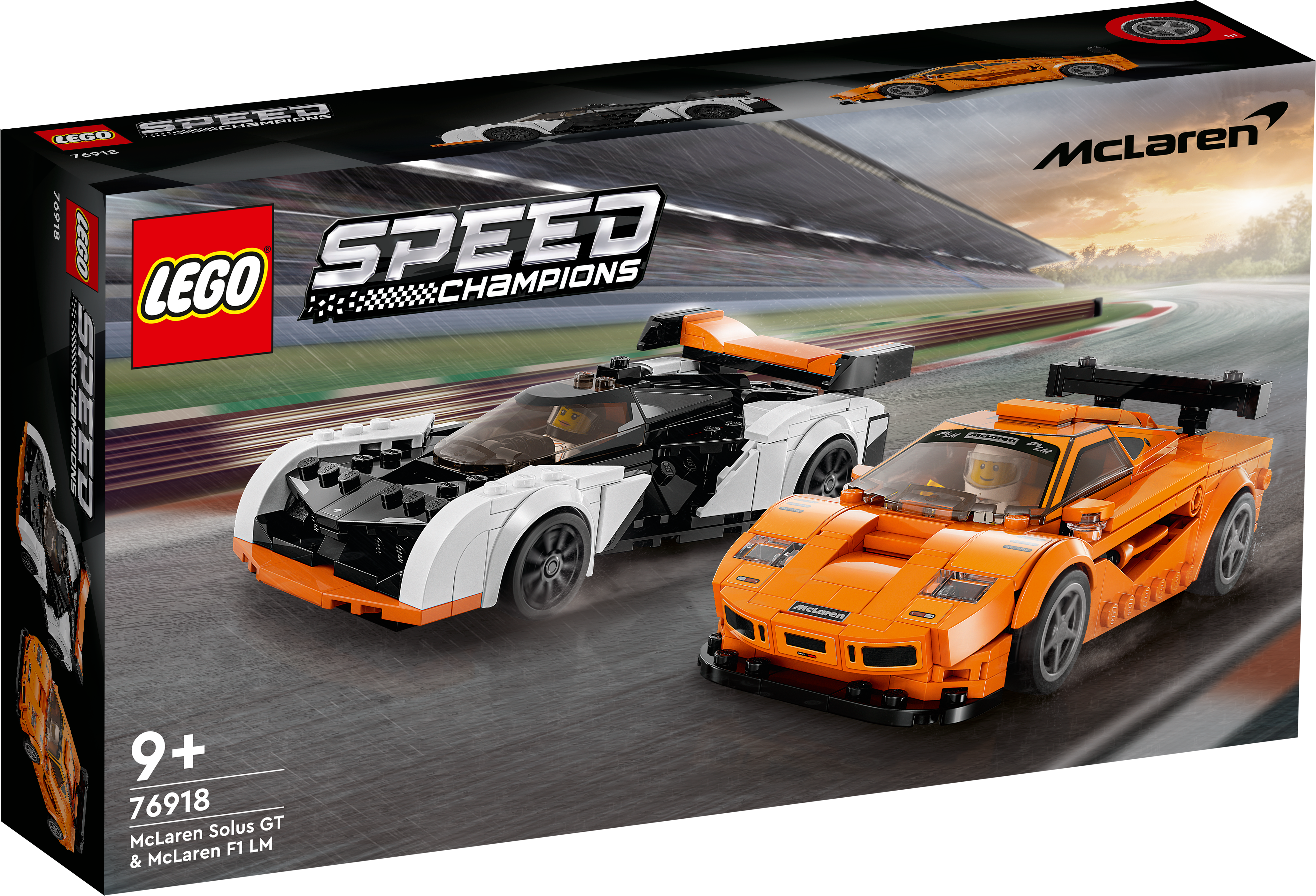 LEGO® Speed Champions McLaren Solus GT & McLaren F1 LM (76918); Modelle von 2 Rennautos; Bau- und Spielset für Autoliebhaber und Kinder ab 9 Jahren; beinhaltet 2 Spielzeugautos zum Sammeln und 2 Rennfahrer-Minifiguren (581 Teile)