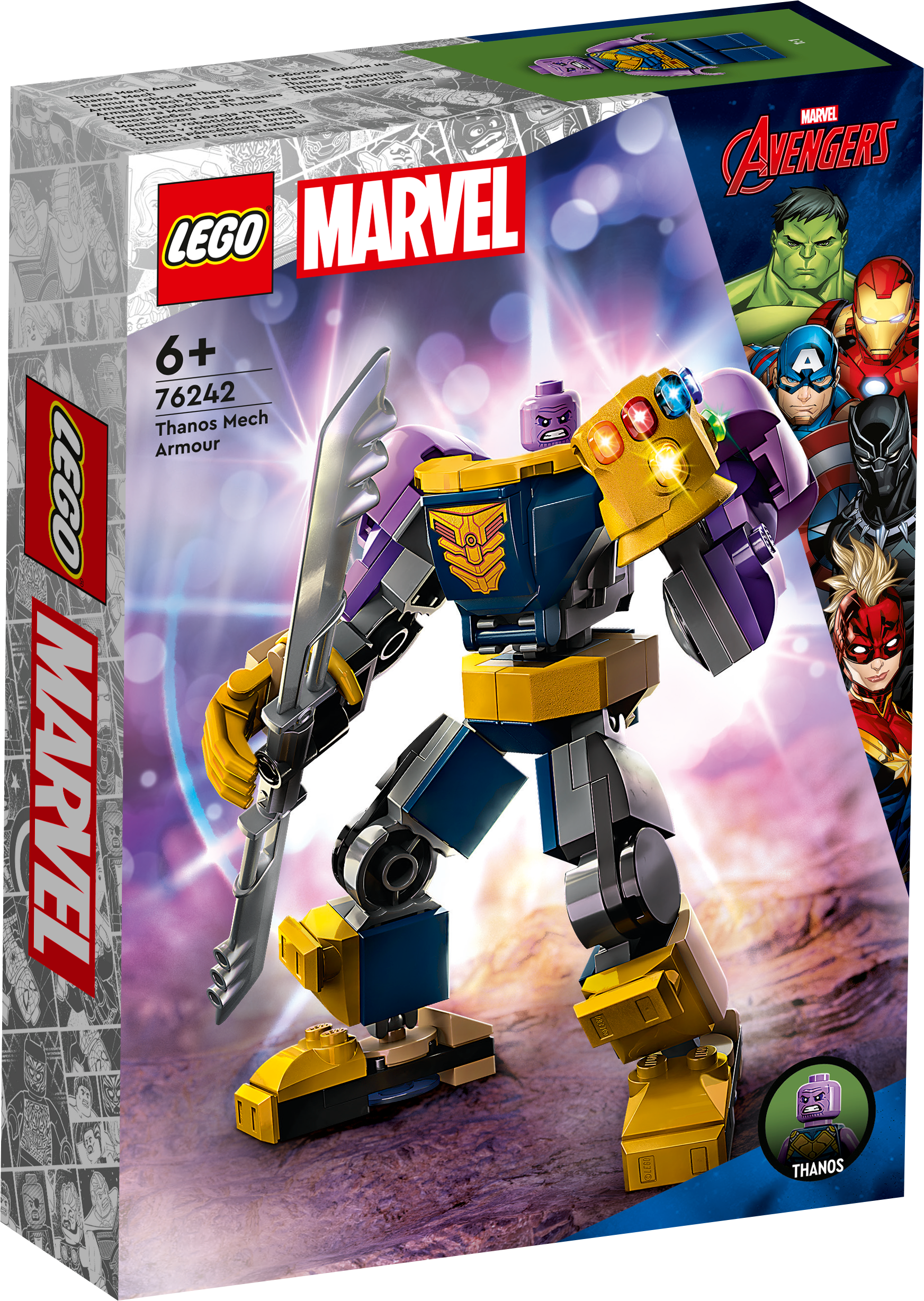 Gigantischer Superschurke: LEGO® Marvel Thanos Mech (76242) ist ein voll gelenkiger Riese, der dein Kind unzählige fantasievolle Actionabenteuer darstellen lässt