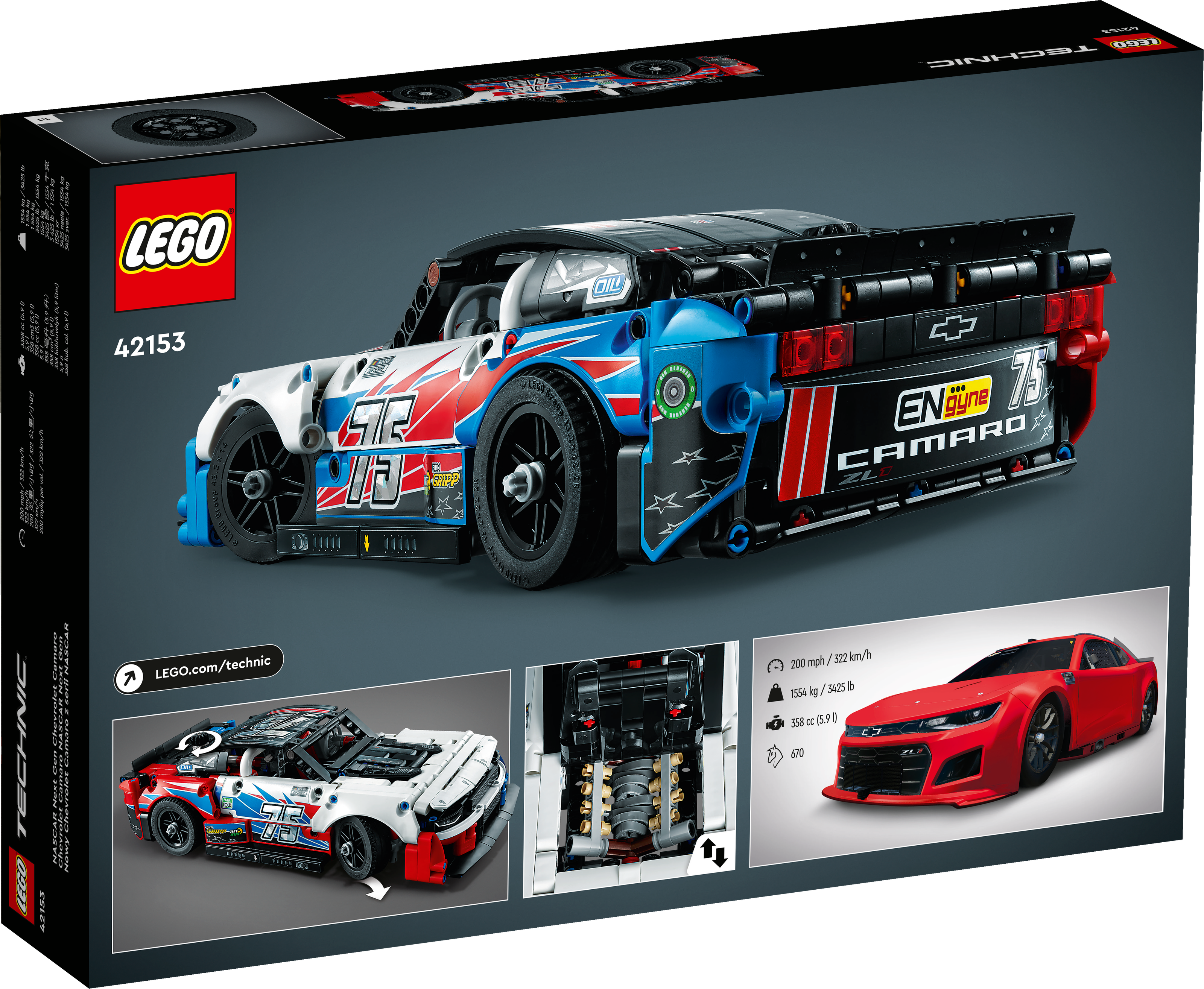 LEGO® Technic NASCAR® Next Gen Chevrolet Camaro ZL1 (42153); Bau- und Spielset; fesselndes Bauprojekt für Kinder ab 9 Jahren, die Spielzeug-Rennautos und Sammlerstücke lieben (672 Teile)
